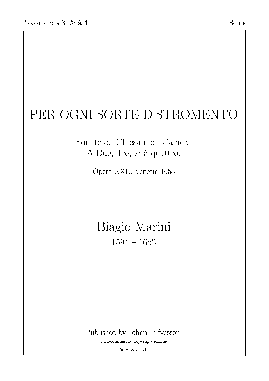 | Genre Categories | Passacaglias; For 2 violins, viola, continuo; Scores featuring the violin; |