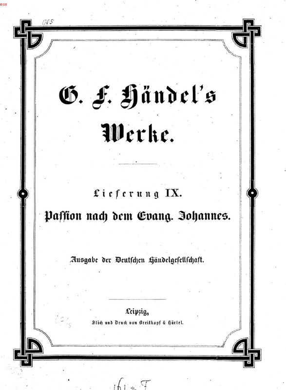 Hallische Händel-Ausgabe, Serie I: Oratorien und große Kantaten, Band 2: Passion nach dem Evangelisten Johannes (pp.1-71) Kassel: Deutsche Händelgesellschaft, 1964. Plate BA 4022.URTEXT EDITION