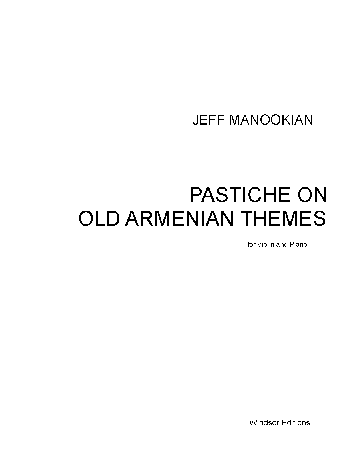 Pastiche on Old Armenian Themes for Violin and Piano/String Orchestra