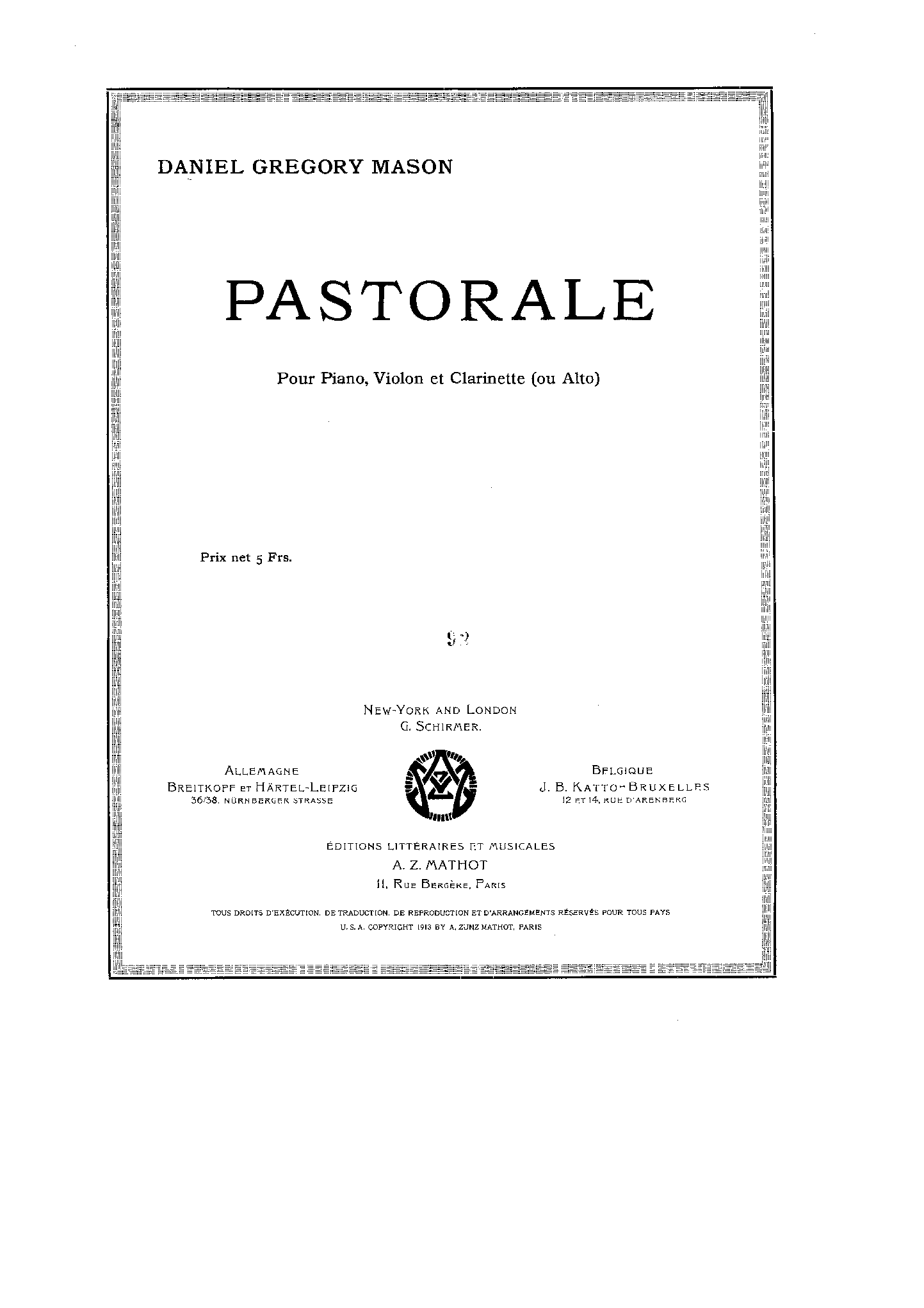 | Genre Categories | Pastorales; For violin, viola, piano; Scores featuring the violin; |
