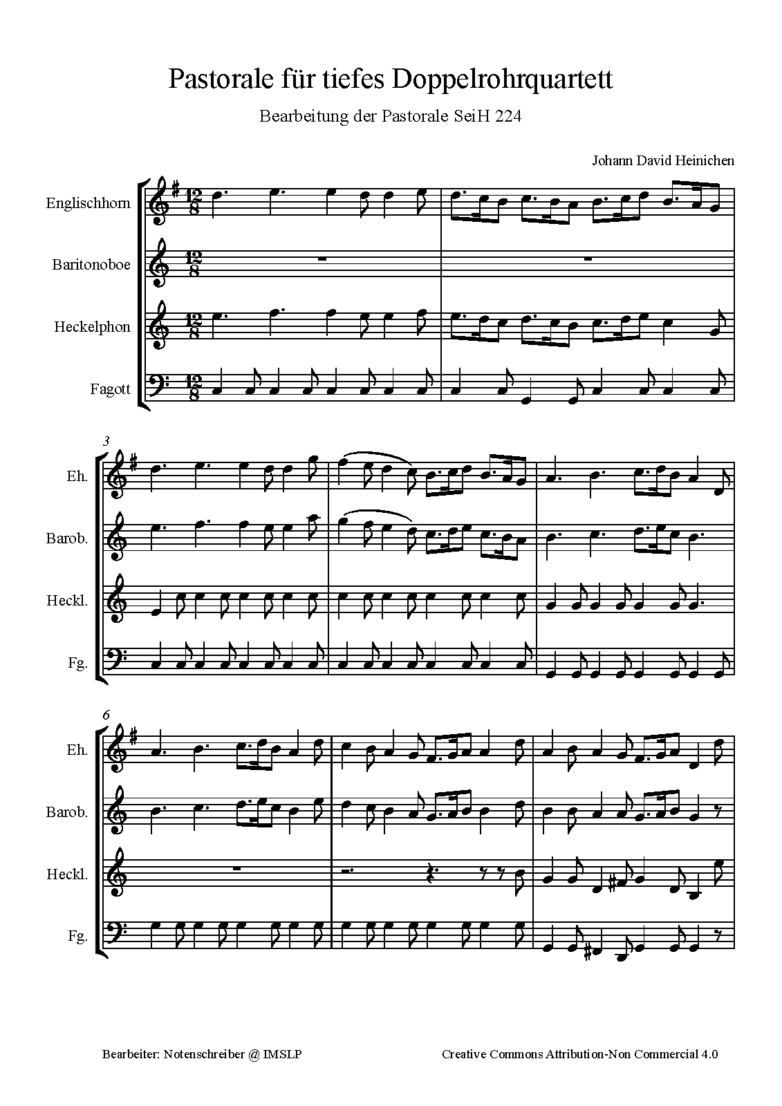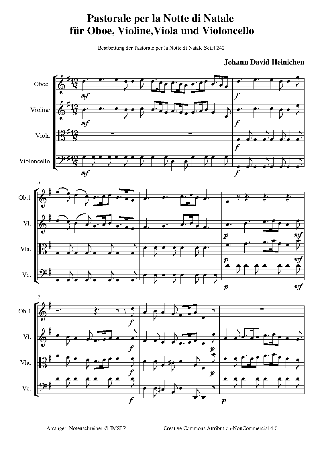 | Instrumentation | Solo: 2 oboes en chalmaux (and 2 flutes, which are according to RISM not added by Heinichen) Orchestra: 2 oboes, bassoon, strings, continuo |