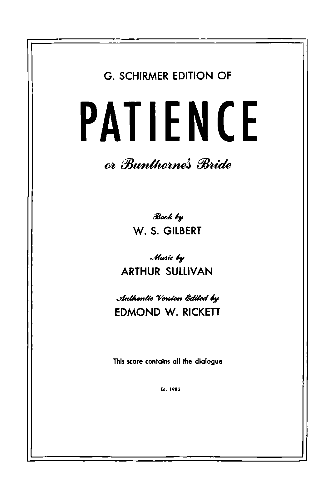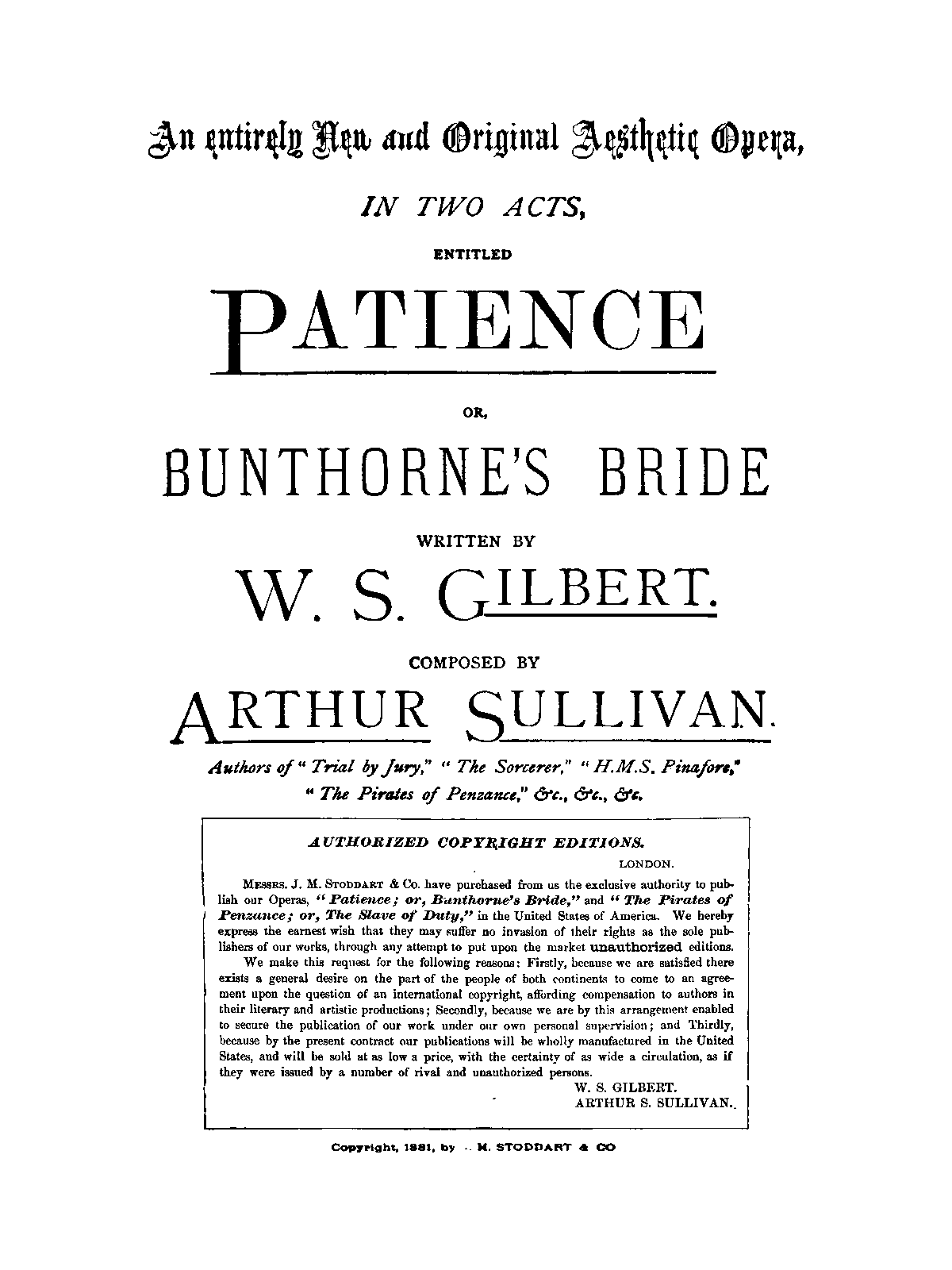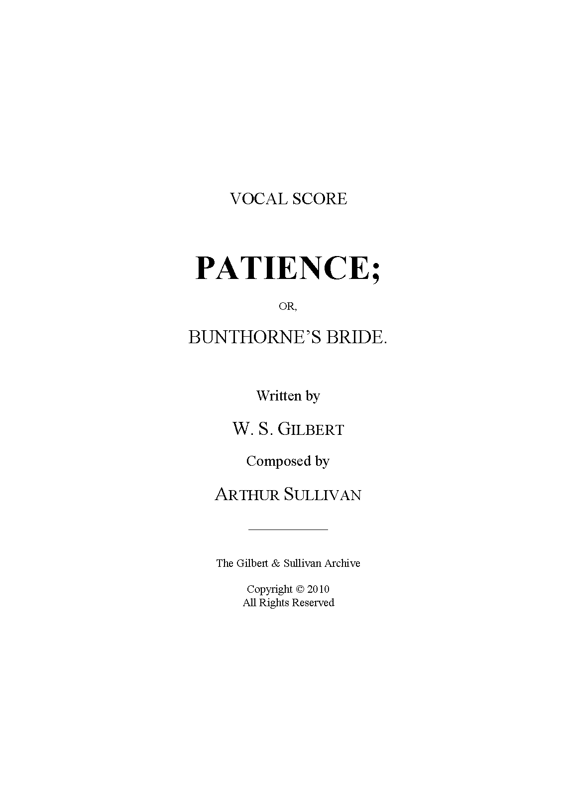 | Alternative. Title | Bunthorne's Bride |