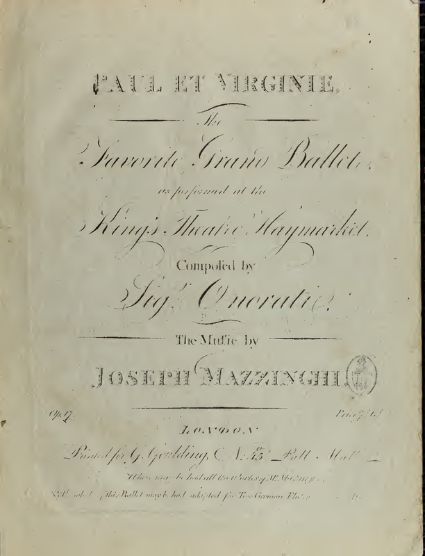 Not to be confused with Mazzinghi's later stage collaboration with William Reeve, Paul and Virginia.