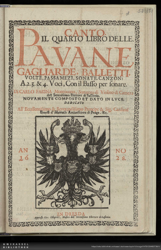 | Alternative. Title | Il quarto libro delle Pavane gagliarde, balletti, volte, passamezzi, sonate, canzon: a. 2. 3. & 4. Voci, con il basso per sonare |