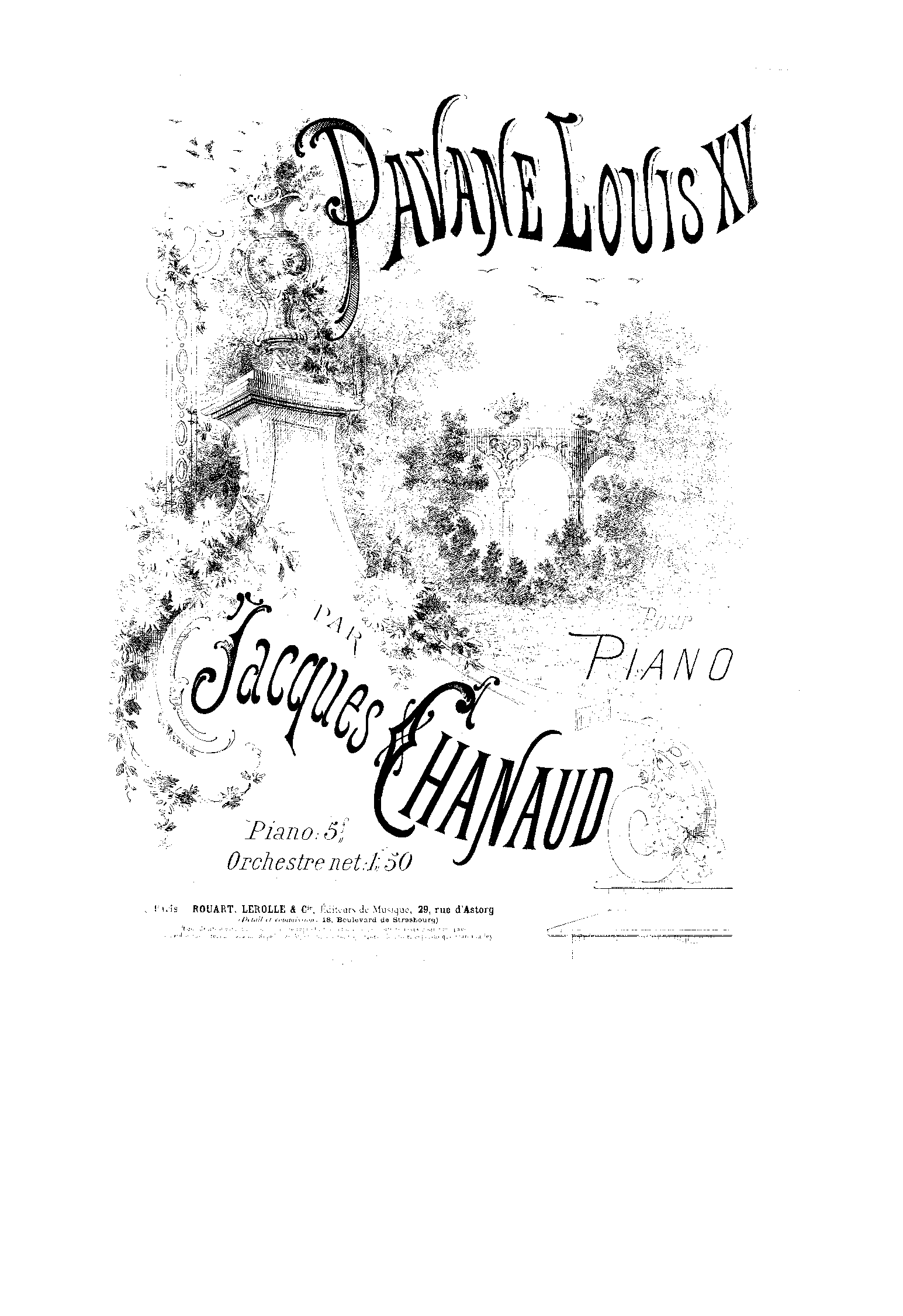 If Meuriot's plate numbers were consecutive, then using BNF's habit of tracking dates using dépot légal, they have a score dated to 1893 published by Meuriot with plate number 792 - suggesting that Pavane Louis XV was written after 1893; and another dated to 1894 with plate 1459. Suggesting a date of between 1893 and '94.