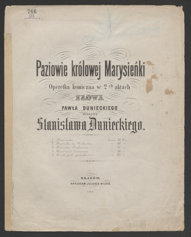 | Alternative. Title | Queen Mary's Pageboys ; Paziowie królowej Marysieńki : operetka komiczna w 2ch aktach. / muzyka Stanisława Dunieckiego ; słowa Pawła Dunieckiego |