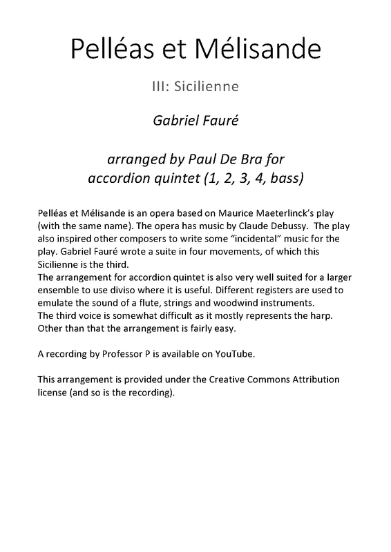 The incidental music was apparently orchestrated in part by Charles Koechlin. Fauré re-orchestrated movements 1, 2, and 4 of the suite in 1900, adding the "Sicilienne"(No.3) about a decade later.
