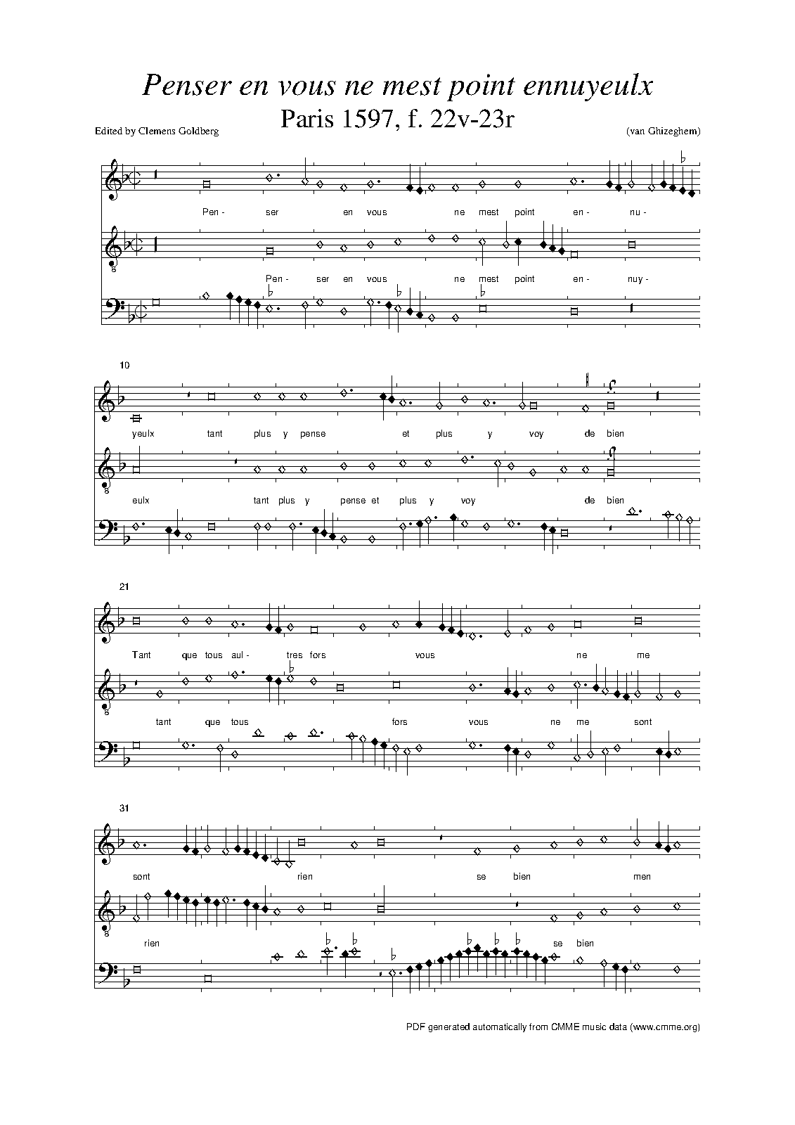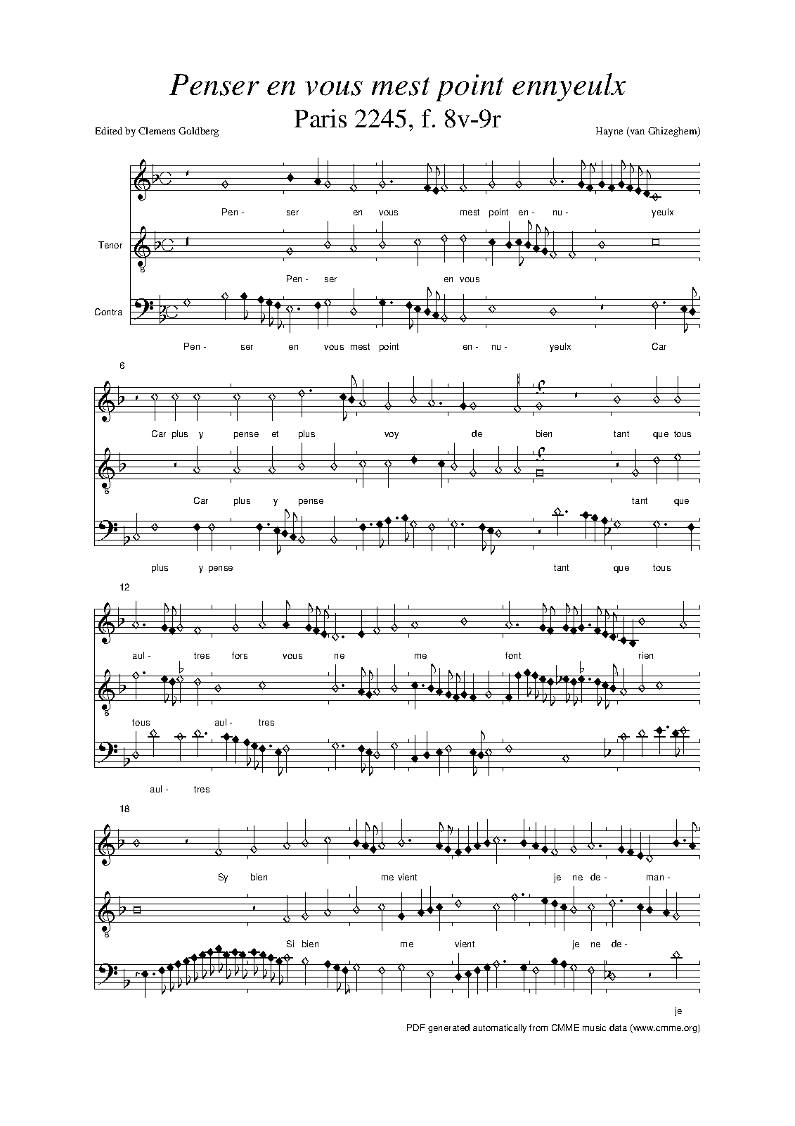 | Alternative. Title | Penser en vous ne mest point ennuyeulx |