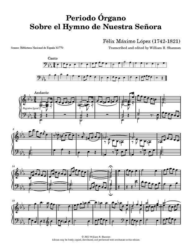 | Work Title | Periodo Órgano Sobre el Hymno de Nuestra Señora |