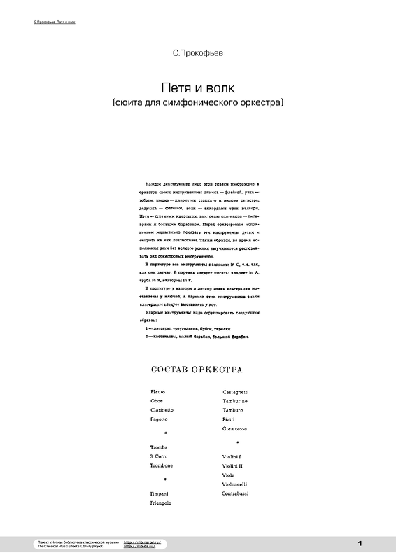 | External Links | Peter and the Wolf, Op.67 - Scores at Sheet Music Plus |