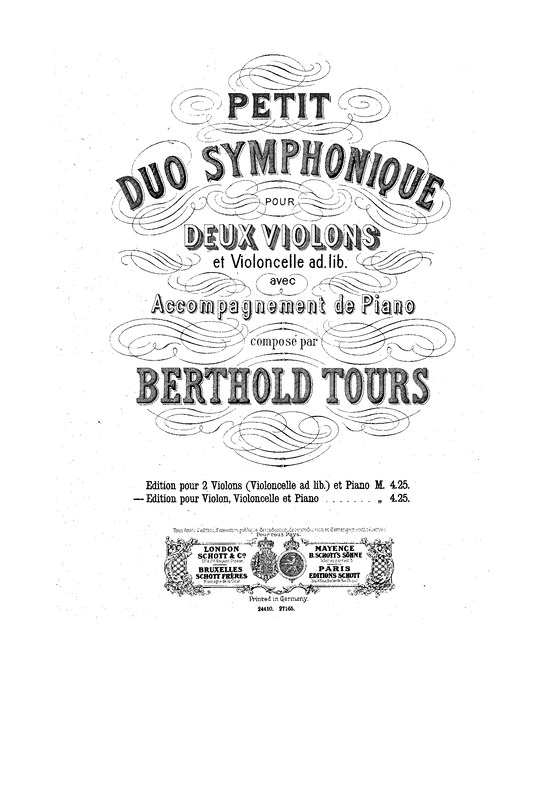 | Instrumentation | 2 violins, piano (Cello ad lib.) |