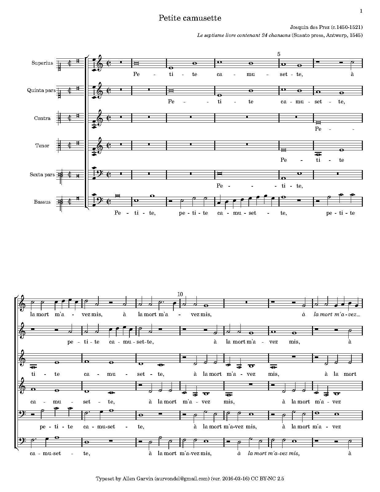 | First Publication | 1545 in Le septisme livre contenant 24 chansons a 5 et 6 (Susato press, Antwerp) (No.18) |