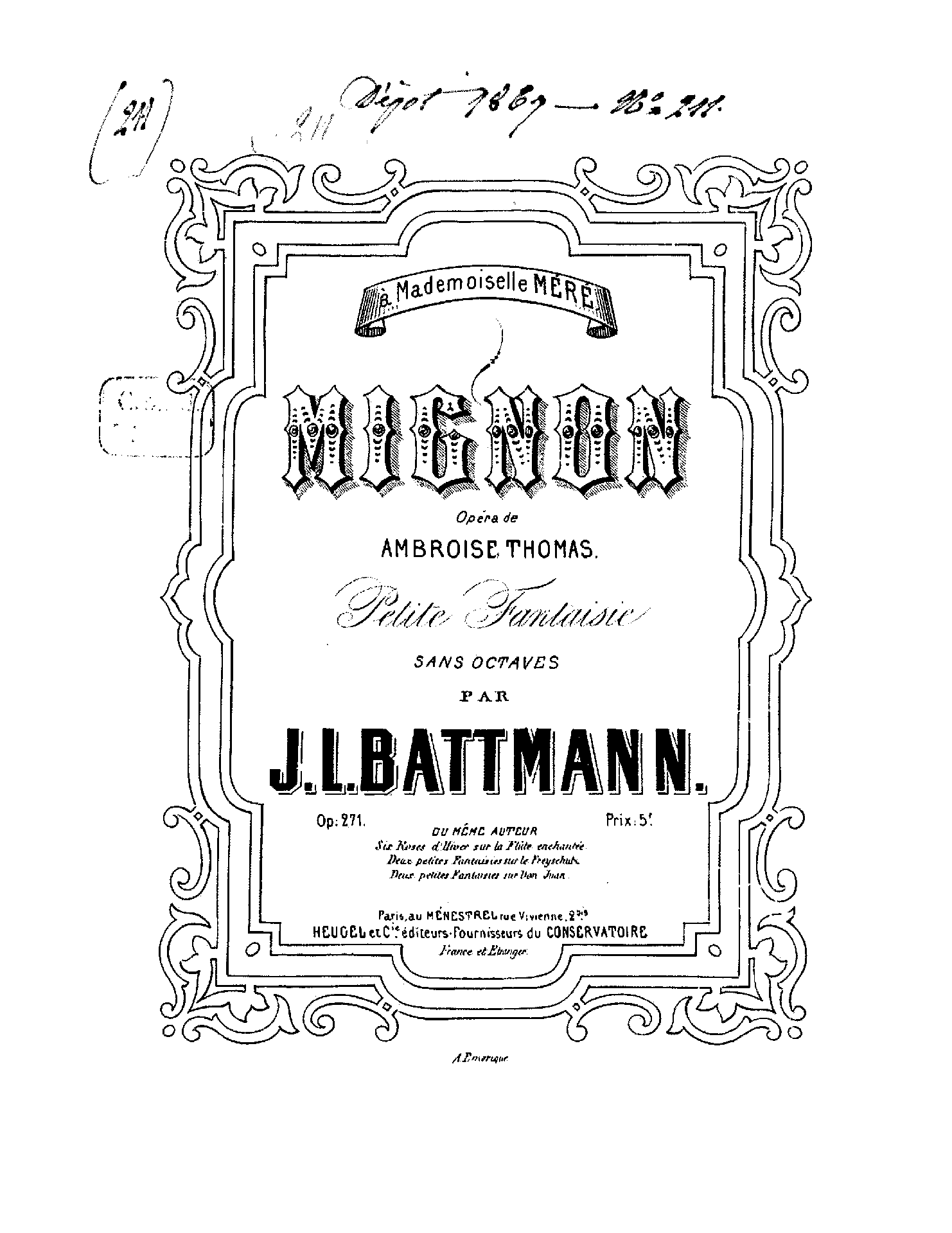Mignon. Opéra de A. Thomas. Petite fantaisie sans octaves.