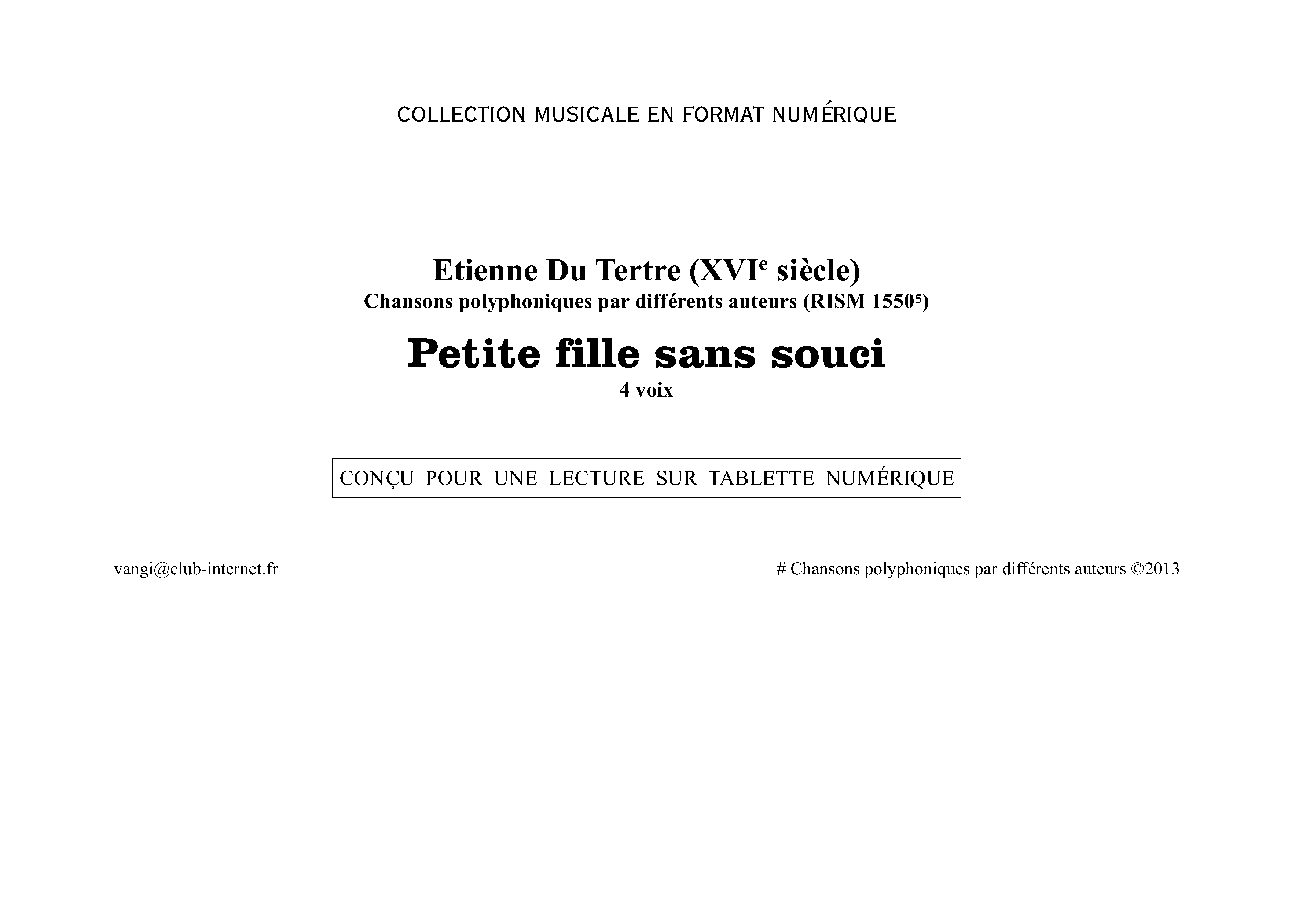| Genre Categories | Chansons; Songs; For 4 voices; |