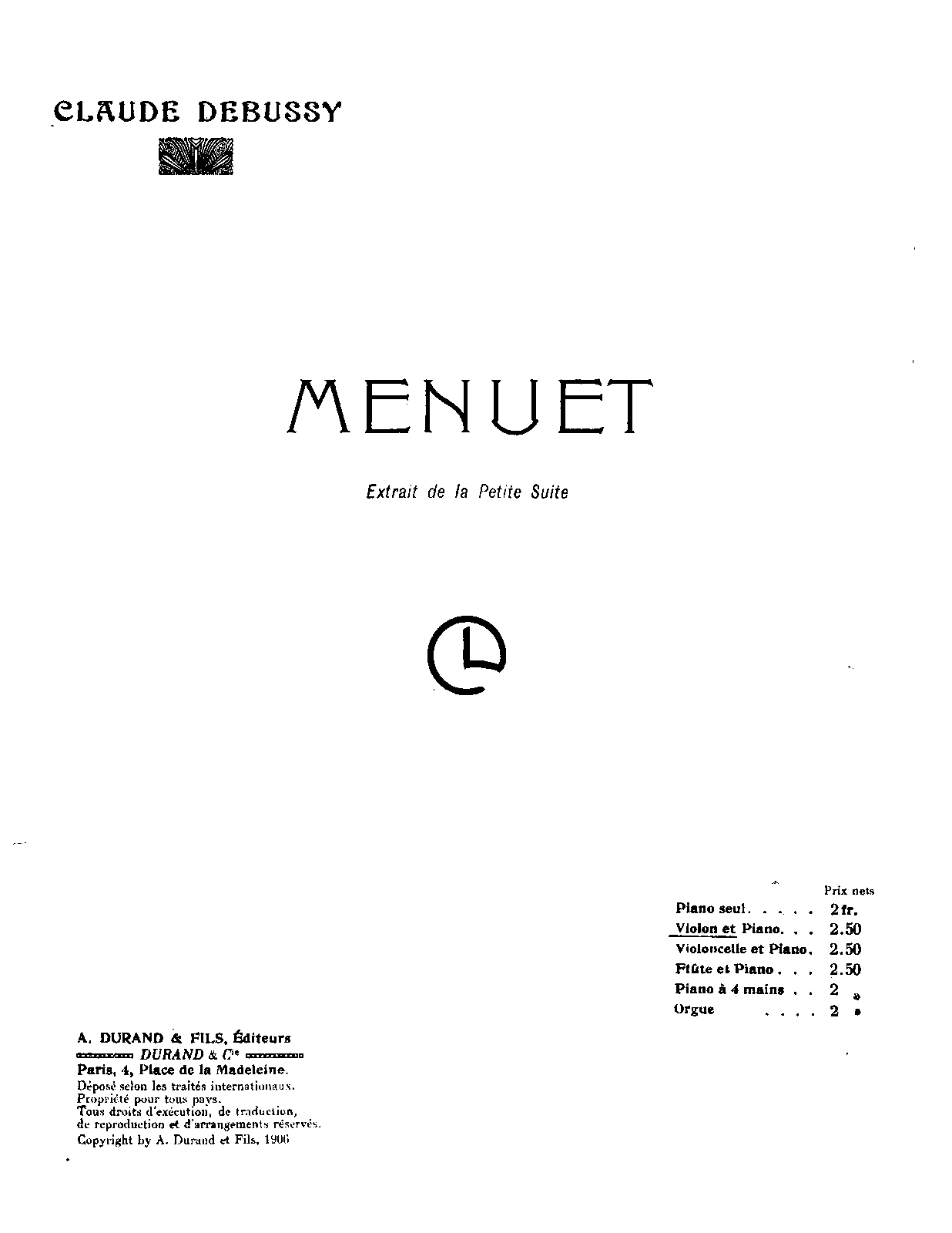 | First Publication. | 1889 (February) - Paris: Durand et Schoenewerk, Plate D.S. 4030 |