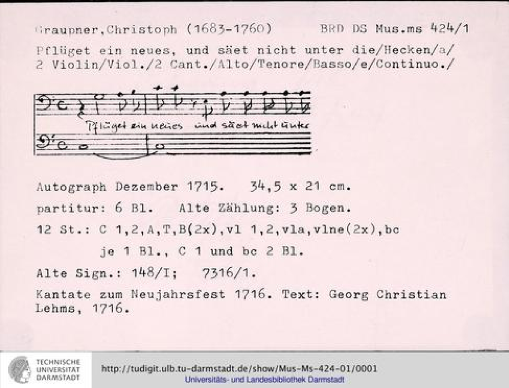| Instrumentation | 2 sopranos, alto, tenor, bass, strings, continuo |