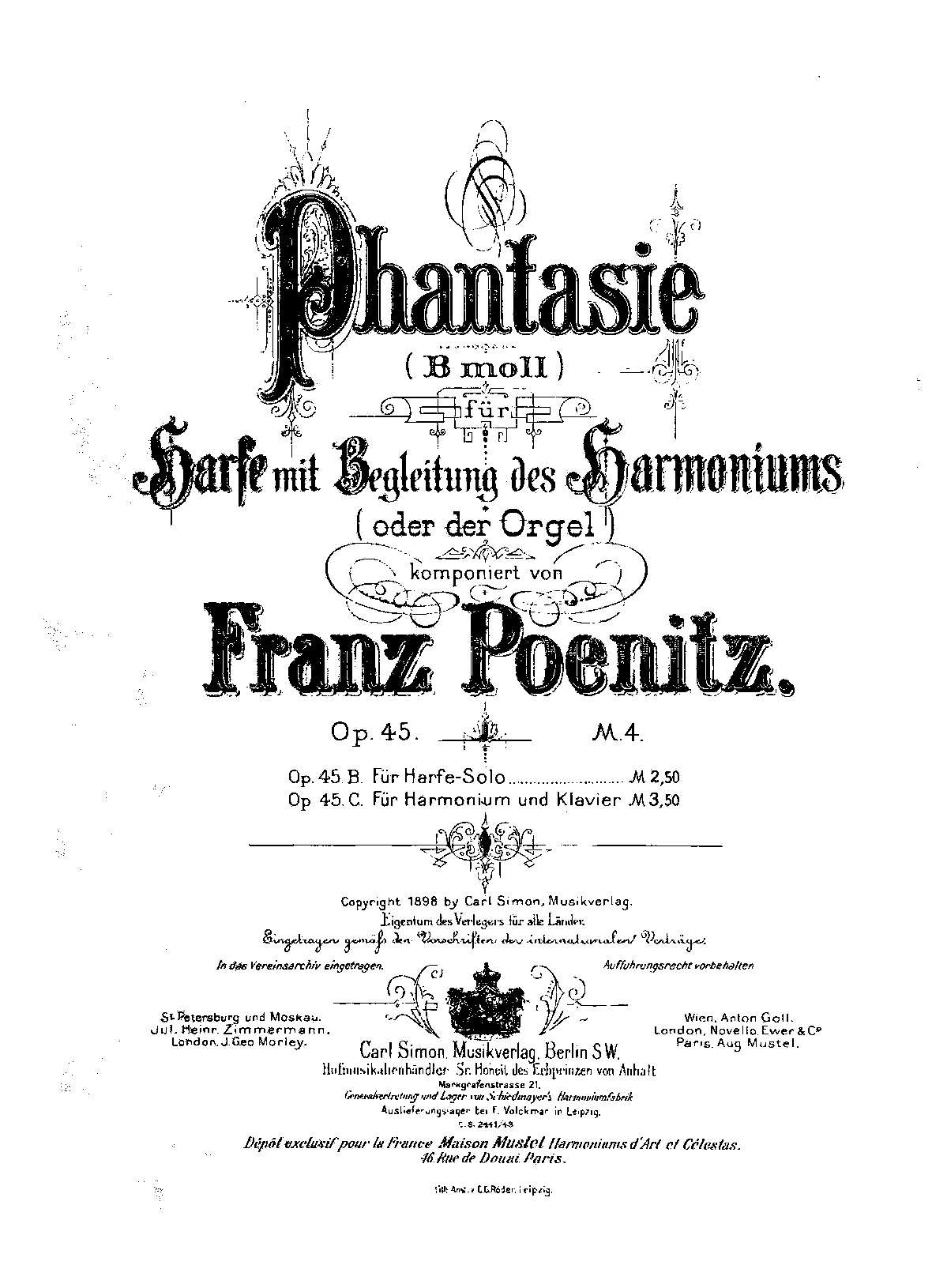 | Genre Categories | Fantasias; For harp, harmonium; Scores featuring the harp; |