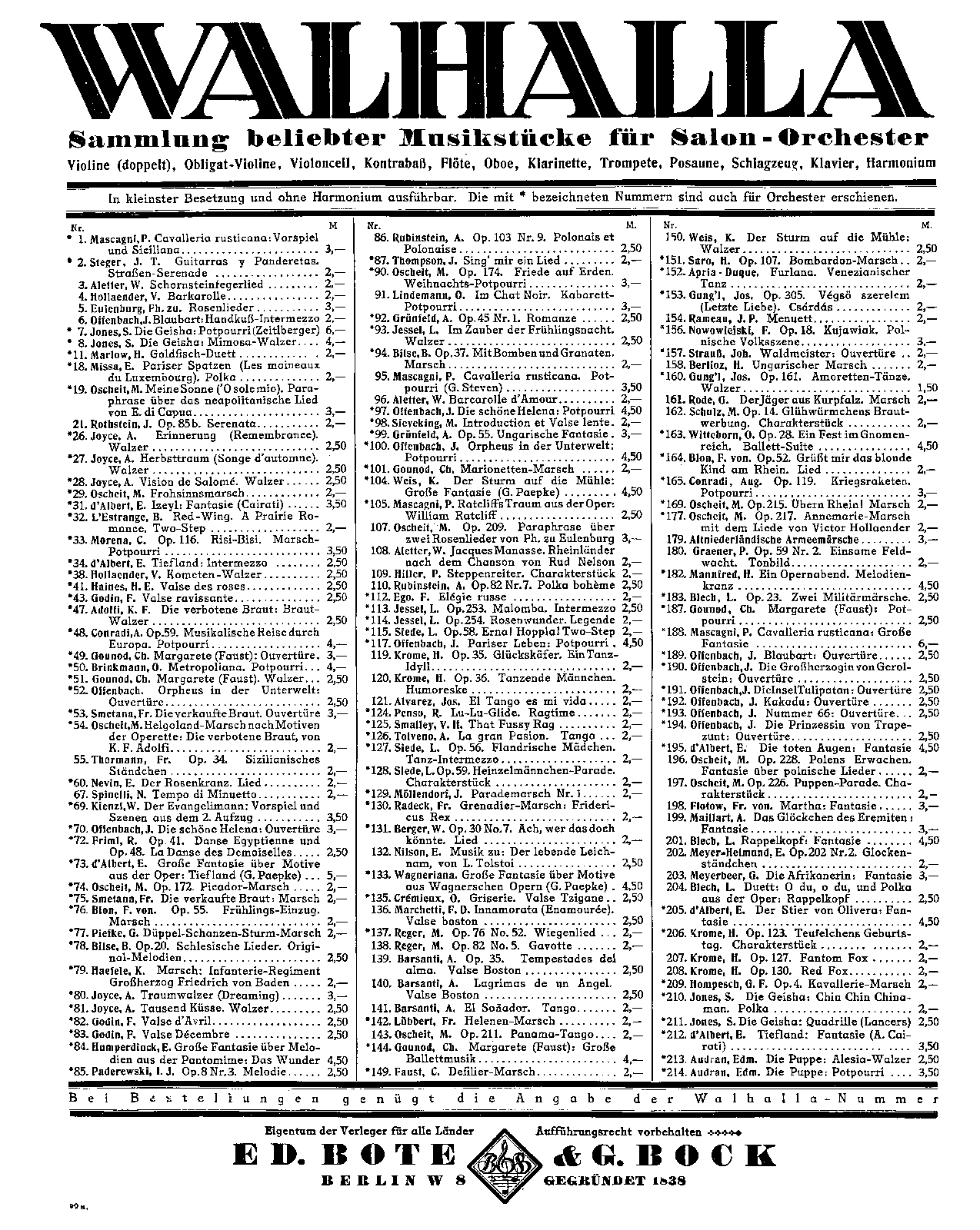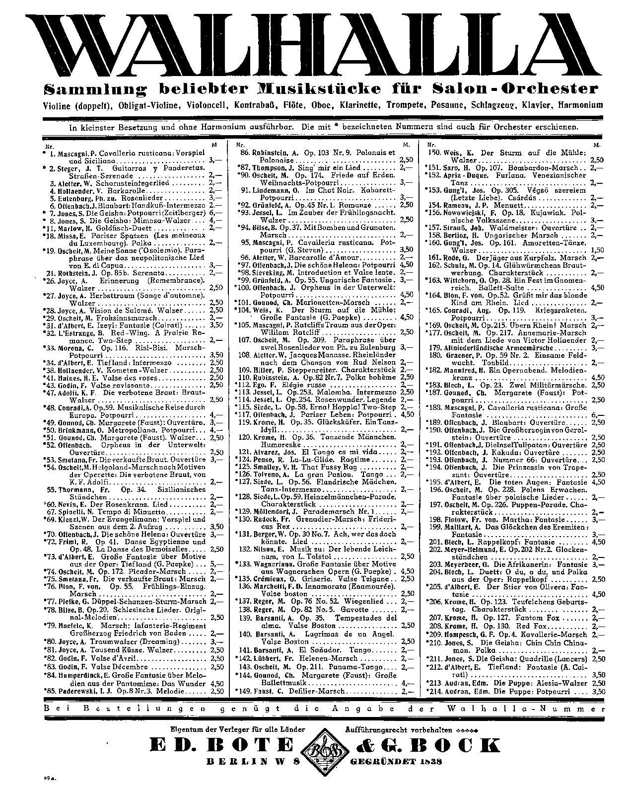 Walhalla, No.605 Berlin: Bote & Bock, 1926. Plate 19688a-e.