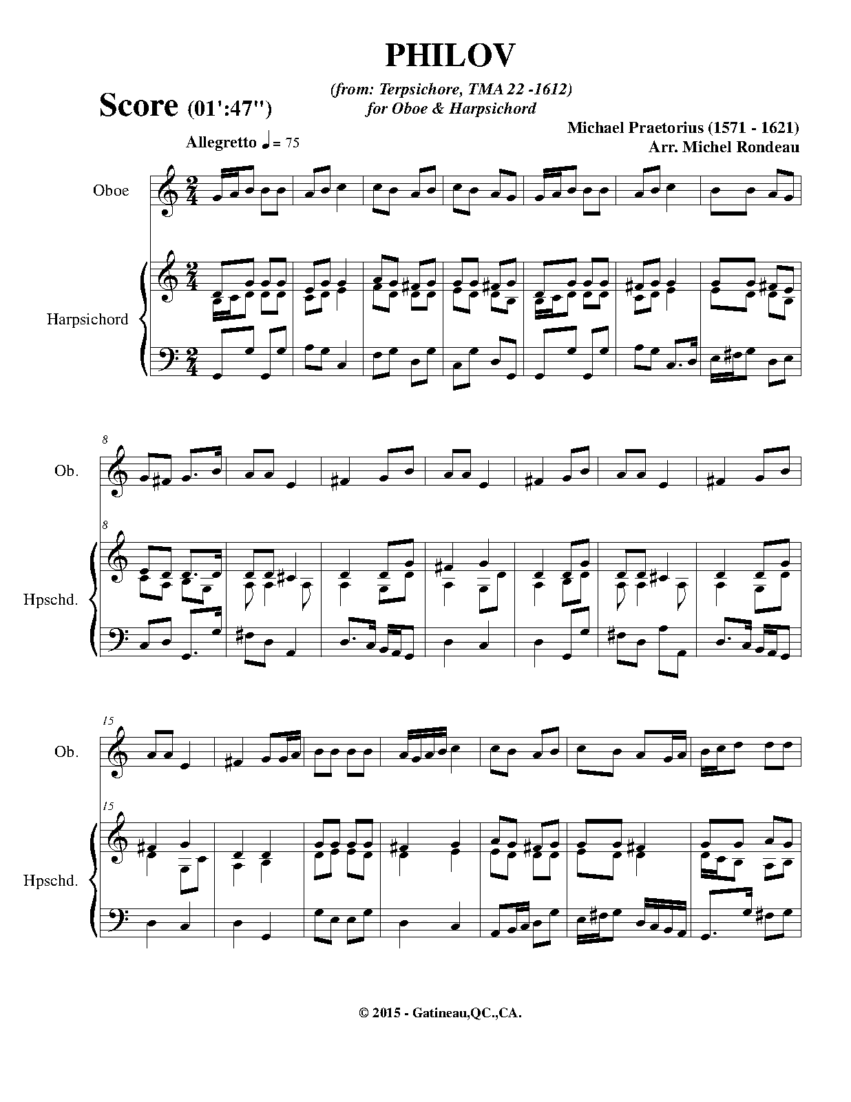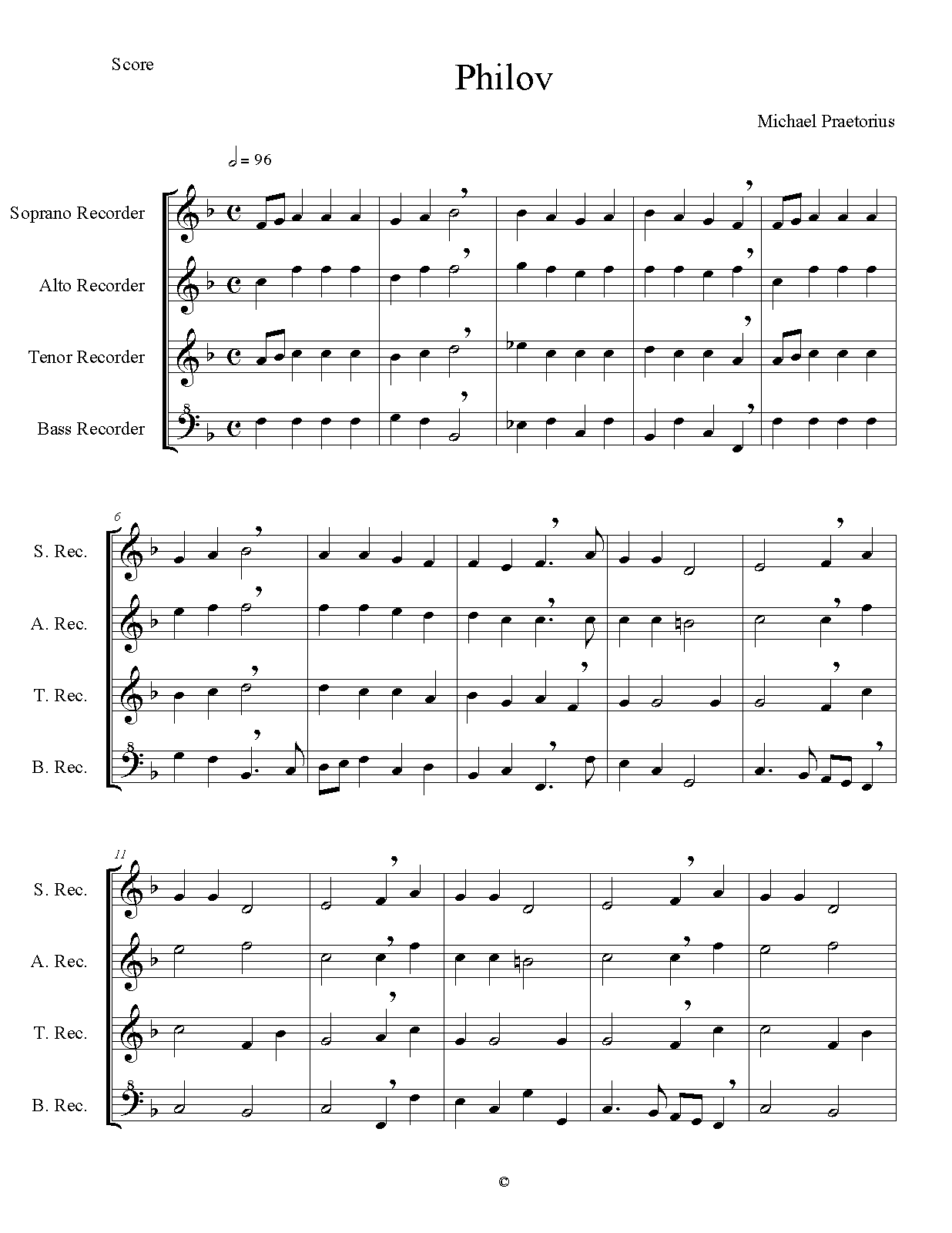 | Extra Information | These pieces were assembled and arranged by Praetorius for his 1612 collection. It is unknown how many, or if any, of the works in the collection were actually composed by Praetorius as opposed to being popular dance tunes arranged by him. The instrumentation is not specified in the original, and simply listed as "à 4". |
