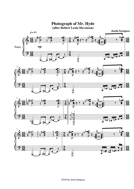 Based on the 1886 novella by Robert Louis Stevenson, this piece is a musical photograph of Mr Hyde as he finally transform from Dr Jekyll. At the end, he leaves his lab to perform his deeds in the streets of old London.