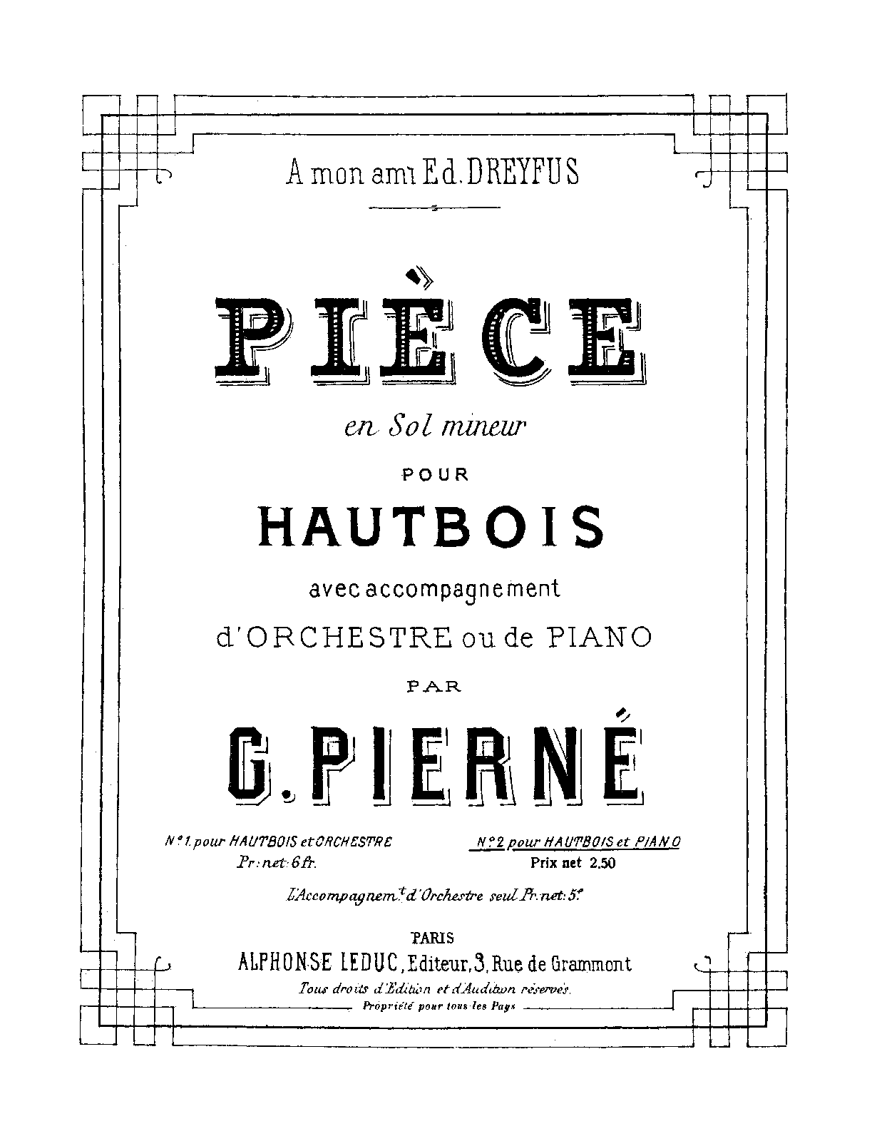 Alternative. Title Pièce en sol mineur pour hautbois avec accompagnement d'orchestre ou de piano