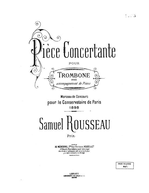 This work was used as an examination piece (Morceaux de concours) by the Conservatoire de Paris. The Conservatoire used this work in the following year(s): 1898.