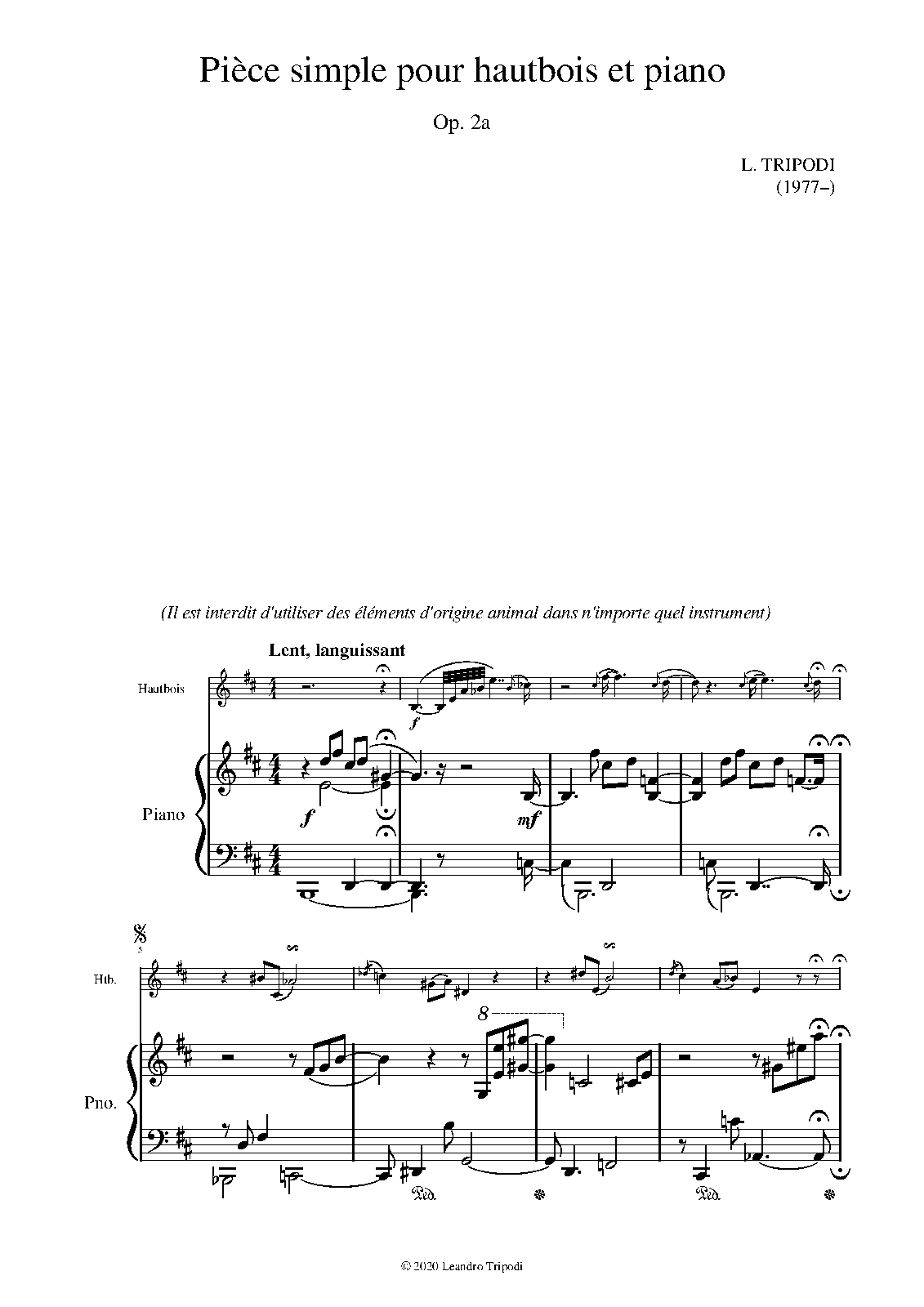 | Work Title | Pièce simple pour hautbois et piano |