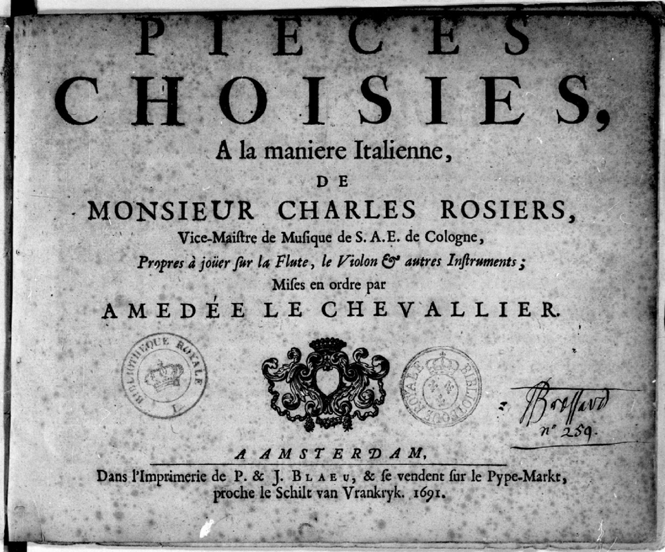 Pieces choisies, a la maniere Italienne, (...) Propres à joüer sur la Flute, le Violon & autres Instruments