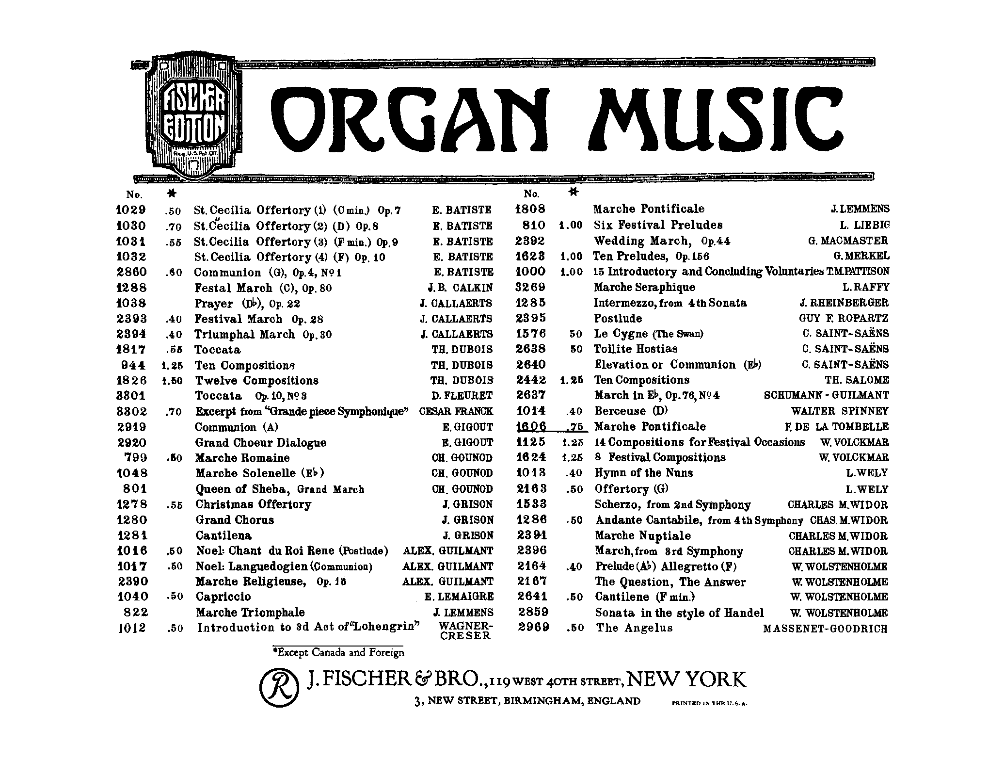 | Genre Categories | Pieces; For organ; Scores featuring the organ; For 1 player |