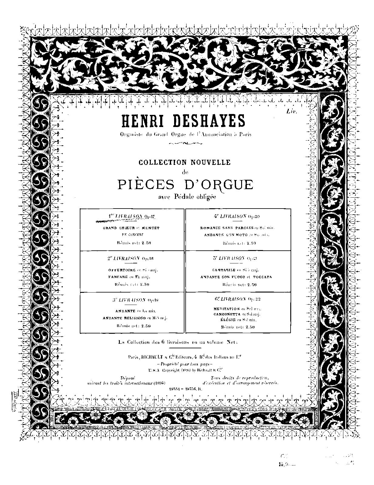 ⇒ 5 more: Offertoire et Fanfare. • Andante et Andante Religioso. • Romance sans paroles et Andante con Moto. • Cantabile et Andante con Fuoco avec Toccata. • Meditation, Canzonetta, et Elegie.