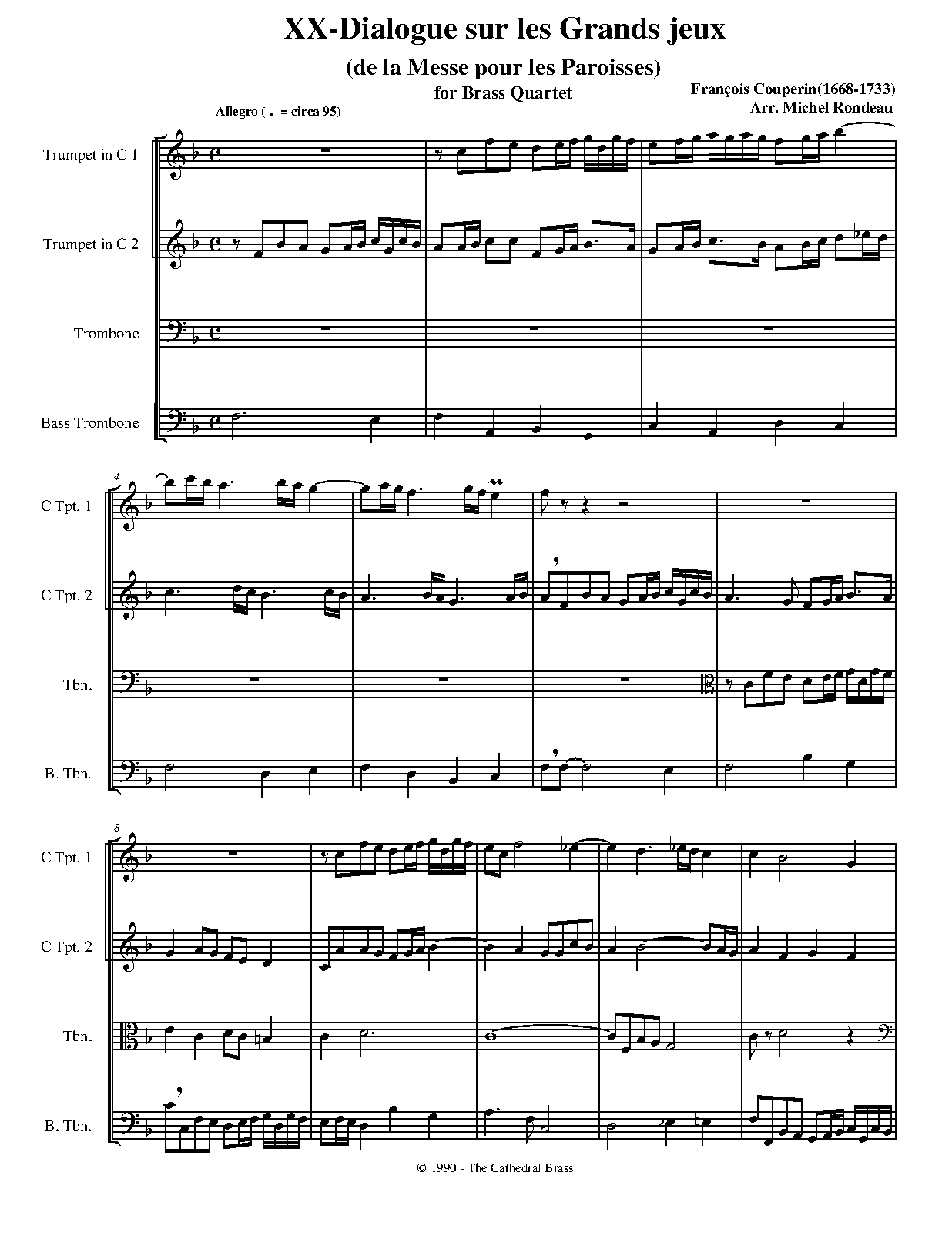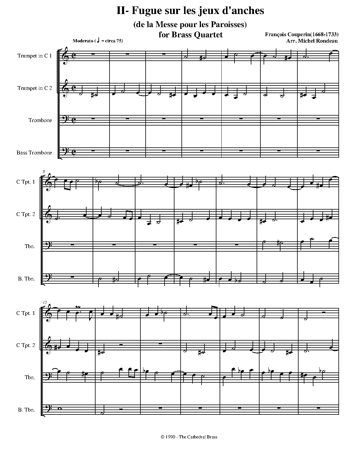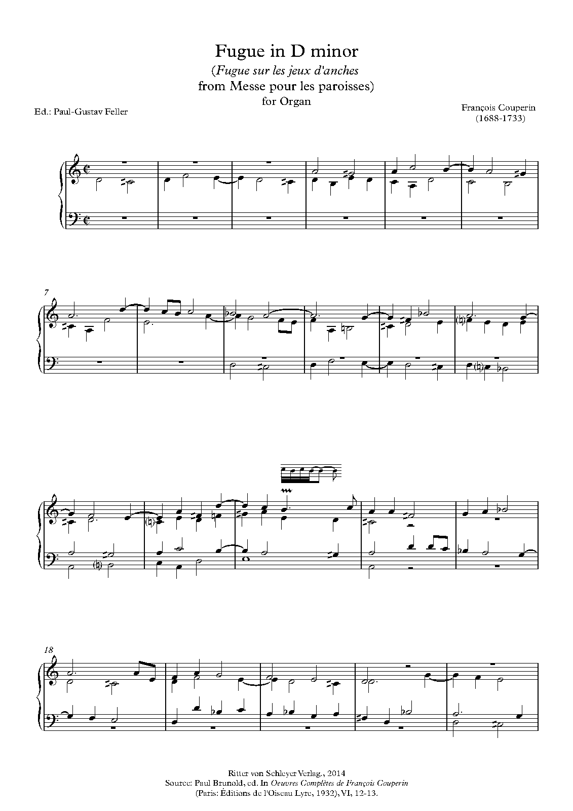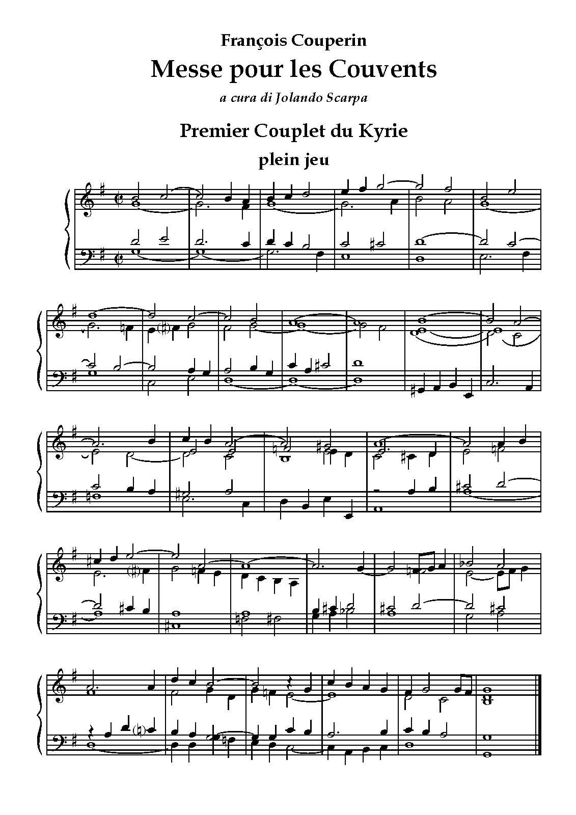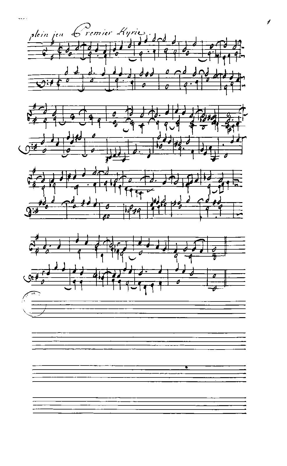 ⇒ 20 more: II. 2e Couplet - Fugue sur les jeux d’anches • III. Troisième Couplet du Kyrie - Récit de Chromhorne • IV. 4e Couplet - Dialogue sur la Trompette et le Chromhorne • V. Plein-chant - Dernier Kyrie • I. Premier Couplet du Gloria « Et in terra pax » - Plein Jeu • II. 2e Couplet « Benedicimus Te » / Petitte fugue sur le Chromhorne • III. 3e Couplet « Glorificamus Te » - Duo sur les Tierces • IV. 4e Couplet « Domine Deus, Rex cælestis » / Dialogue sur les jeux de Trompettes, / Clairon et Tierces du G. C. et le Bourdon avec le Larigot du Positif • V. 5e Couplet « Domine Deus, Agnus Dei » / Trio à 2 dessus de Chromhorne et la basse de Tierce • VI. 6e Couplet « Qui tollis peccata mundi » - Tierce en taille • VII. 7e Couplet « Quoniam Tu solus » / Dialogue sur la Voix humaine • VIII. 8e Couplet « Tu solus altissimus » / Dialogue en Trio, du Cornet et de la Tierce • IX. Dernier couplet du Gloria « Amen » / Dialogue sur les Grands Jeux • Offertoire sur les Grands Jeux • Plein-chant du premier Sanctus en Canon - Plein Jeu • [2e Couplet du Sanctus] Récit de Cornet • Benedictus - Chromhorne en taille • Plein-chant de l’Agnus, en basse et en taille - Plein Jeu • 2e Couplet de l’Agnus - Dialogue sur les Grands Jeux • Deo gratias (Petit Plein jeu)