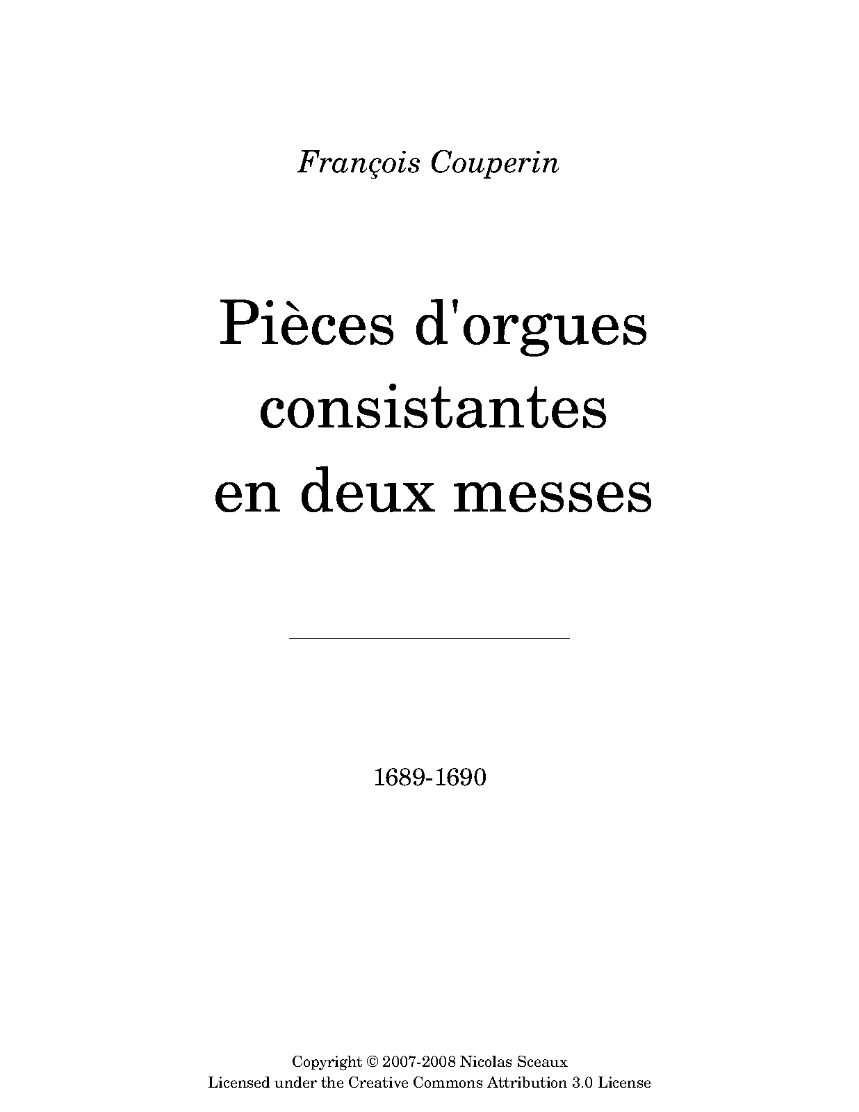 | Name Aliases | Pièces d'orgue consistantes en deux messes |
