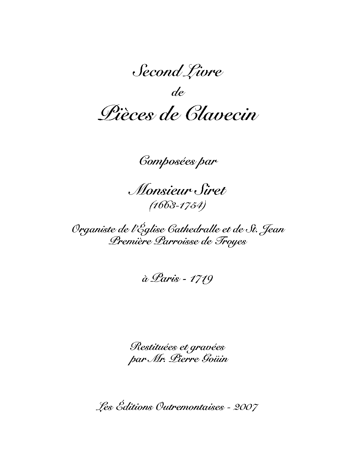 Pièces de Clavecin, Livre 2 (Siret, Nicolas)