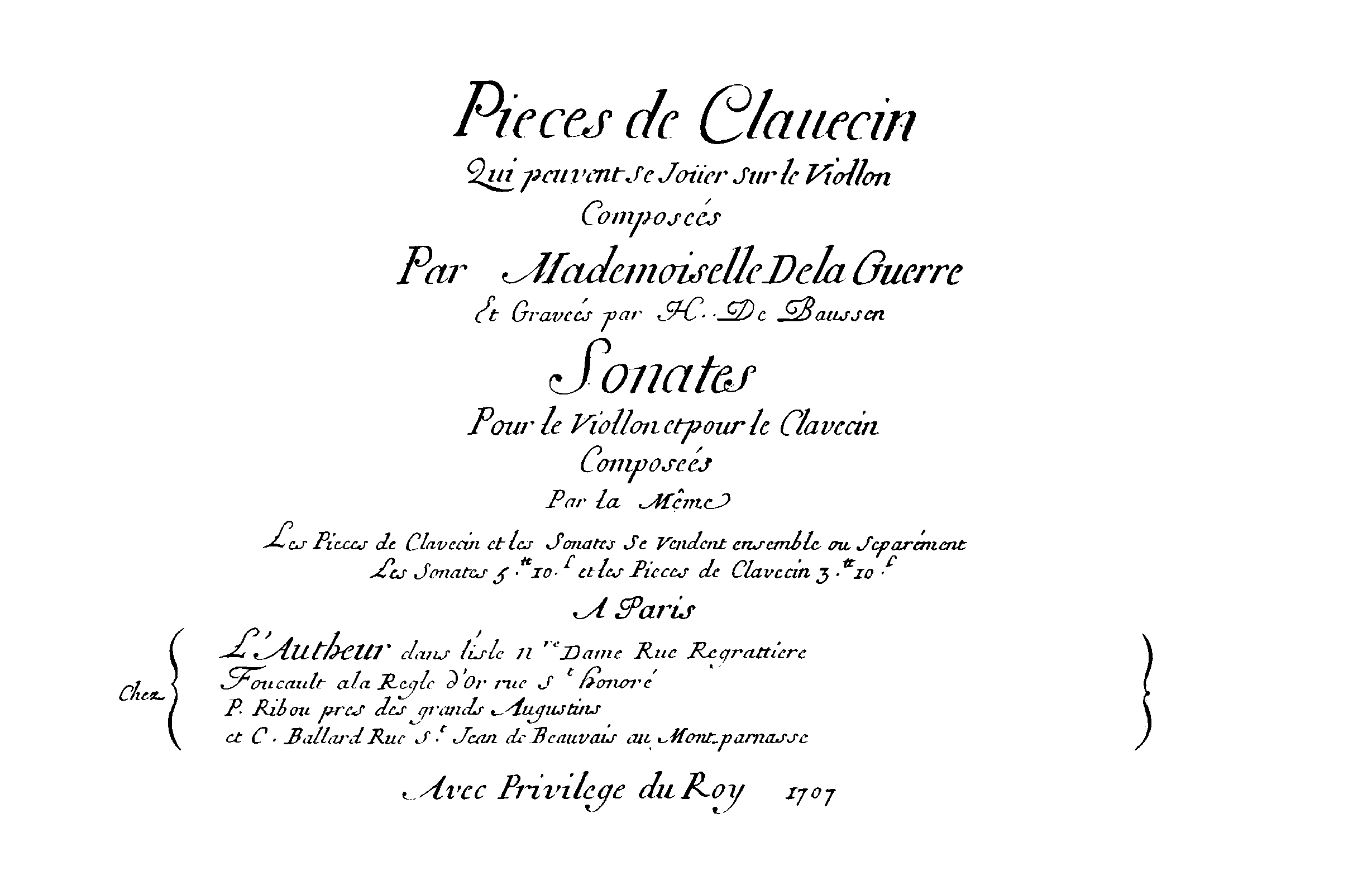 Chez l'Auteur; Foucault; Ribou; Ballard, 1707.