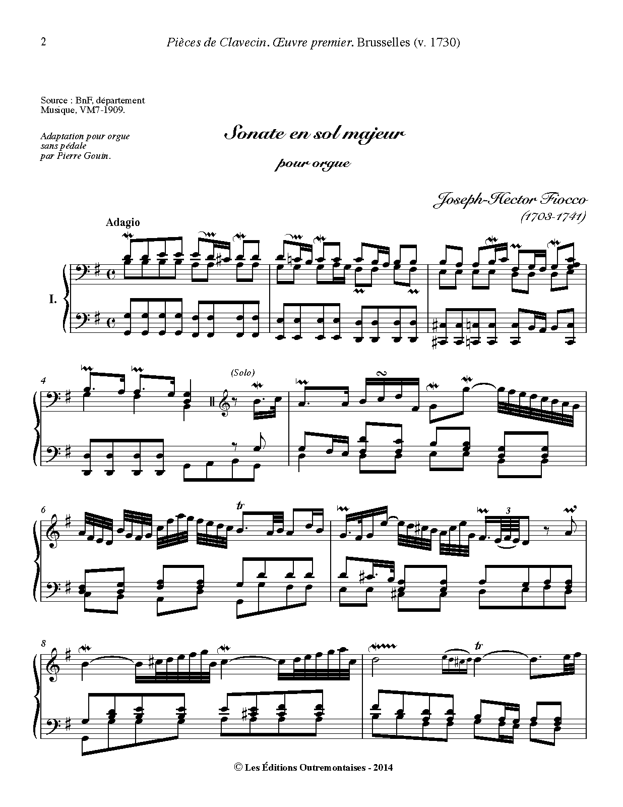 Pièces de clavecin, Op.1 (Fiocco, Joseph-Hector)