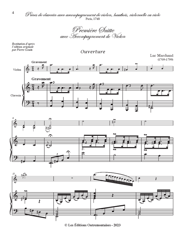 | Alternative. Title | Pièces de clavecin avec accompagnement de violon, hautbois, violoncelle ou viole. Divisées en six suittes dont les deux dernières sont pour le clavecin seul. |