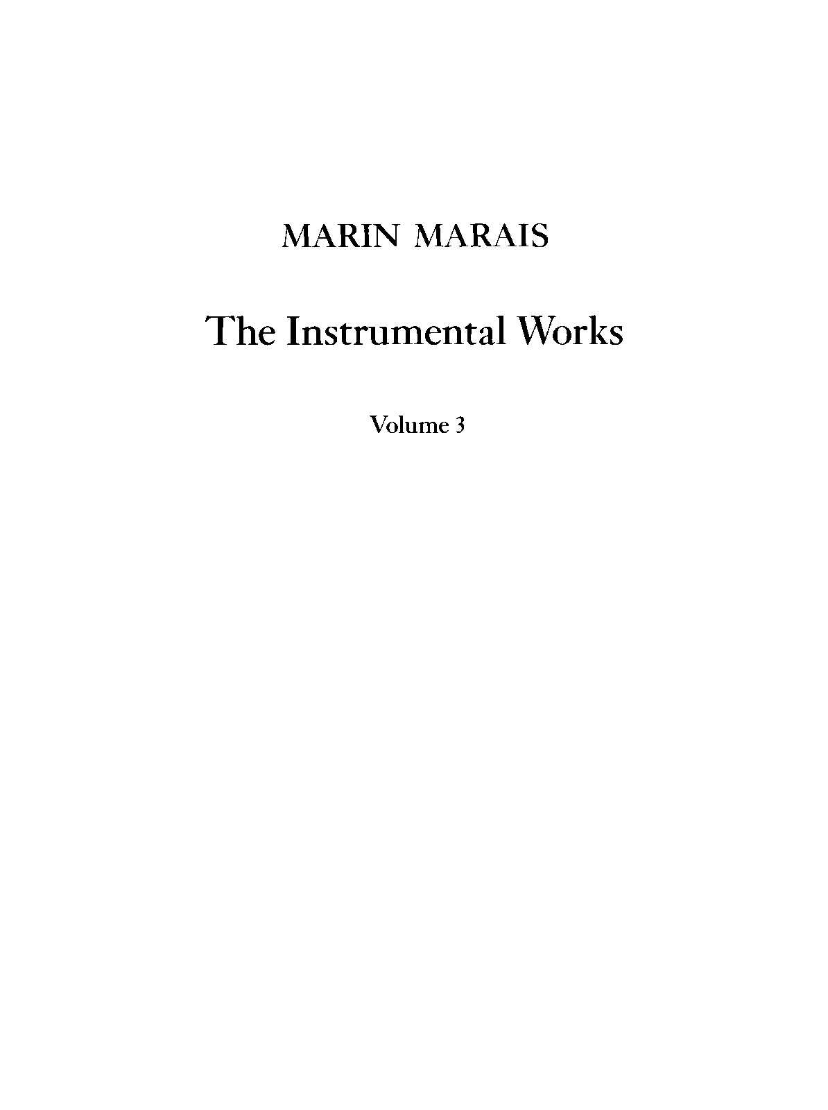 Publisher. Info. Marin Marais: The Instrumental Works, Vol. 3.