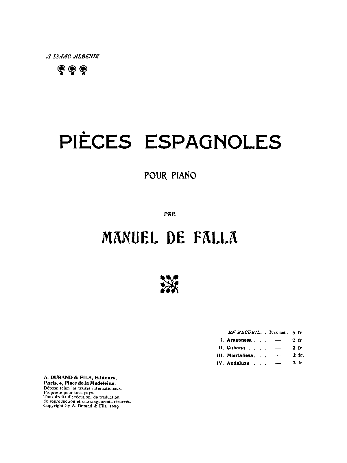 | Name Aliases | Piezas españolas; 4 Pièces espagnoles; 4 Piezas españolas; Quatre Pièces espagnoles; Quatro Piezas españolas |