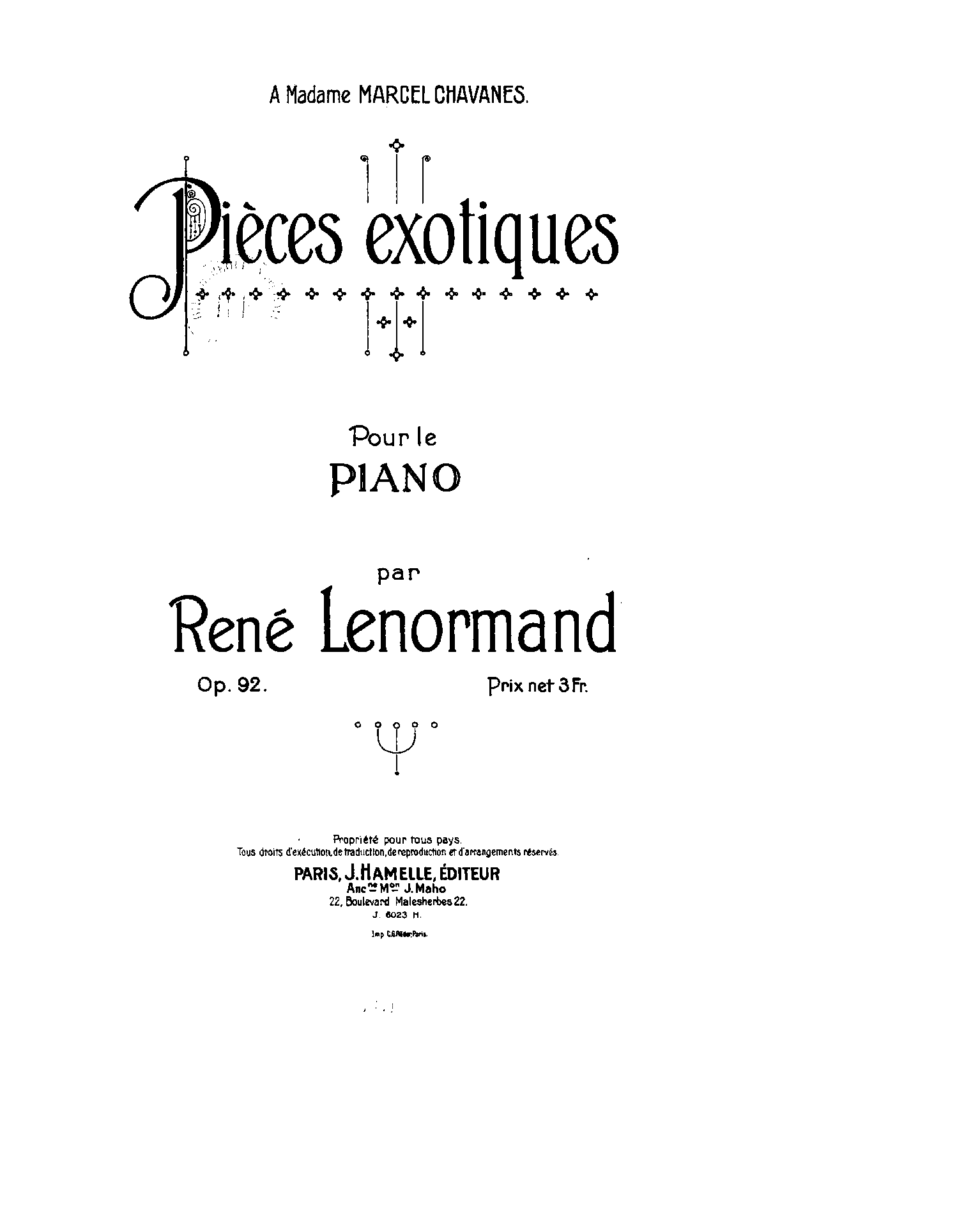 | Dedication | à Madame Marcel Chavanes |