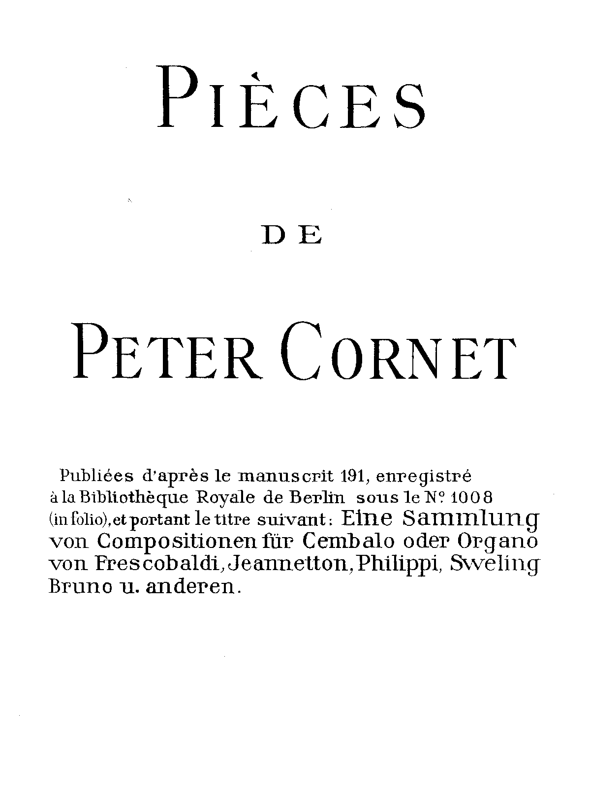 | Work Title | Pièces de Peter Cornet |