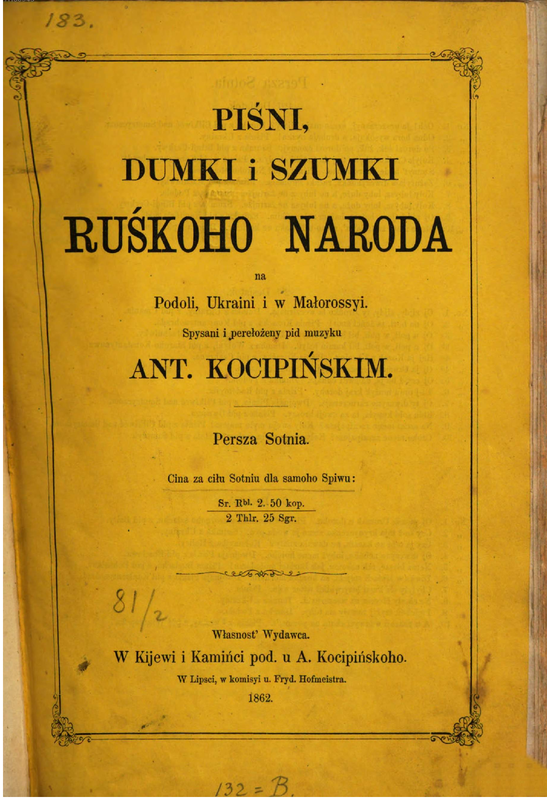 | Work Title | Piśni, dumki i szumki Ruśkoho naroda |