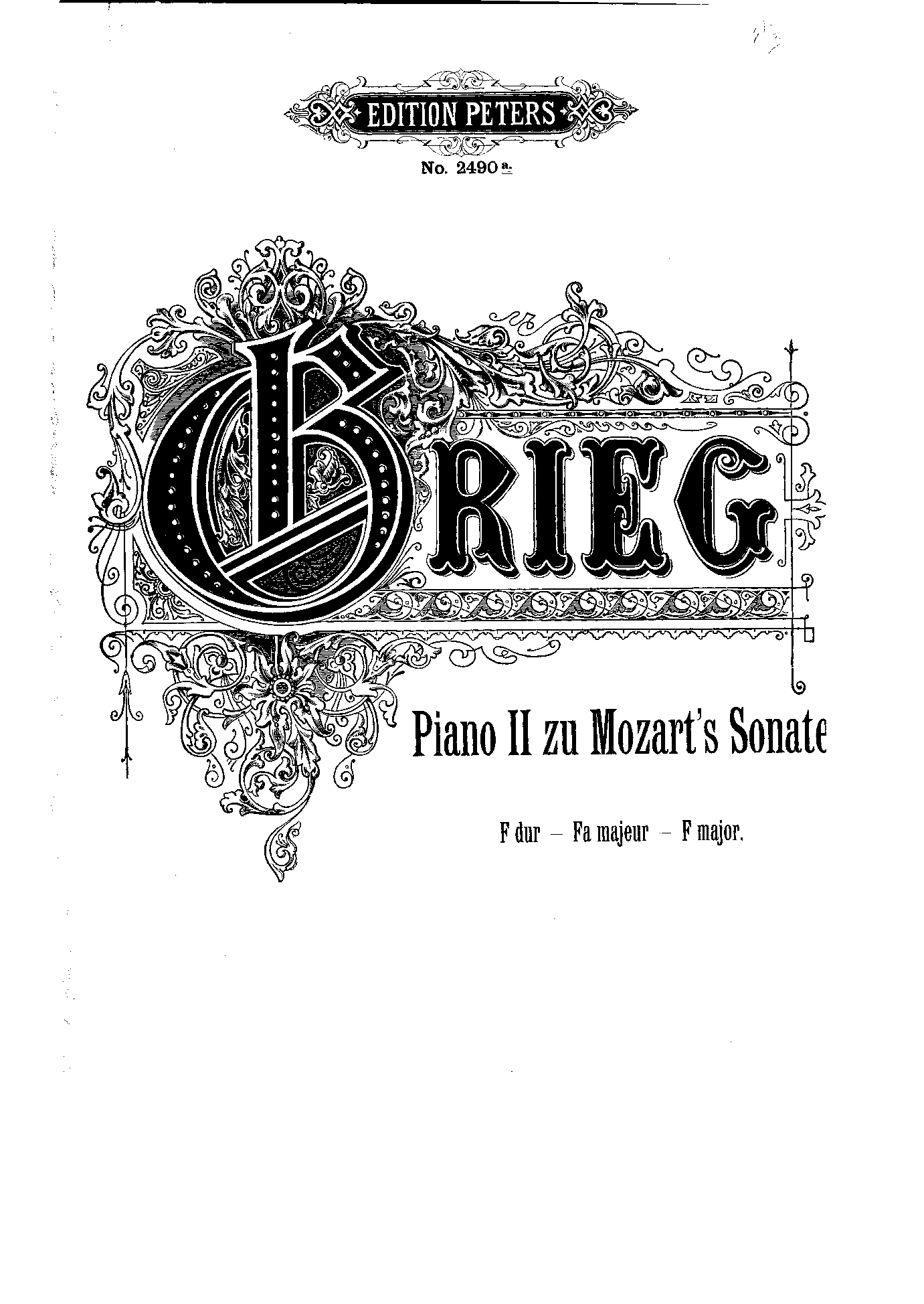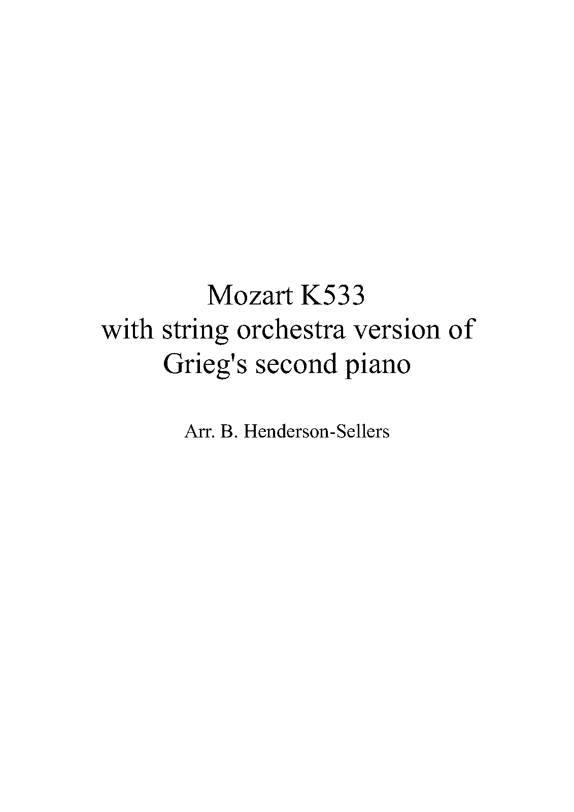 Misc. Notes The string parts are an arrangement of Grieg's second piano part written to accompany the Mozart piano sonata (solo)