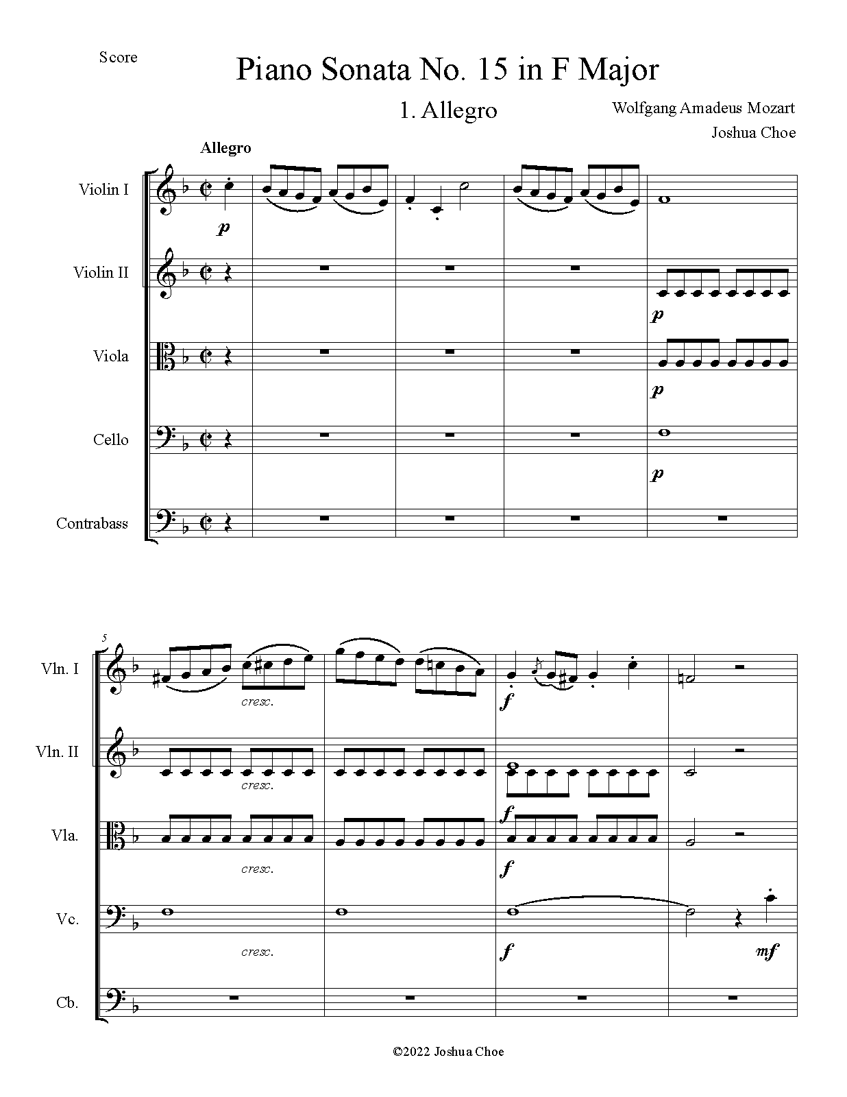 Misc. Notes The string orchestra parts are an arrangement of Grieg's second piano part (see 2 piano arrangement below for part reference) written to accompany the Mozart piano sonata (solo).
