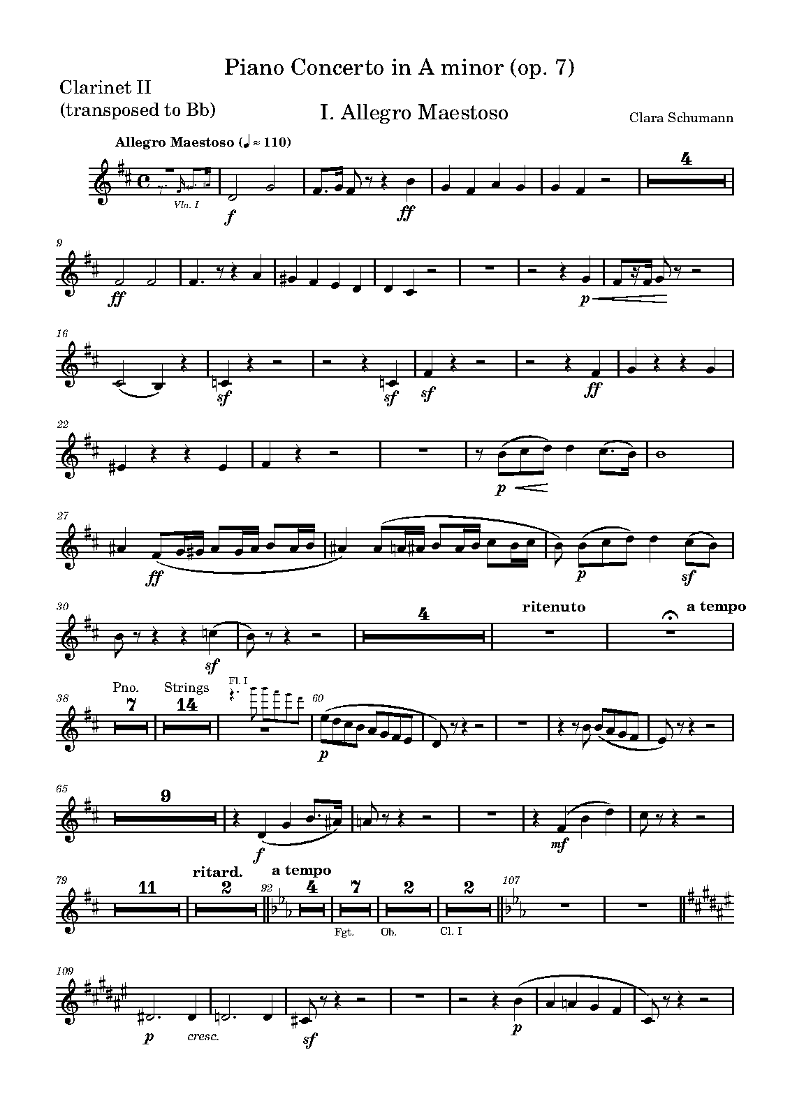 Name Aliases Klavierkonzert Nr. 1; Klavierkonzert a-Moll; Klavierkonzert in a-Moll; Konzert für Klavier und Orchester a-Moll (Clara Schumann); Piano Concerto in A minor; Piano Concerto in A Minor; Piano Concerto in A Minor, Op. 7; Concerto en la mineur, opus 7; A小调钢琴协奏曲