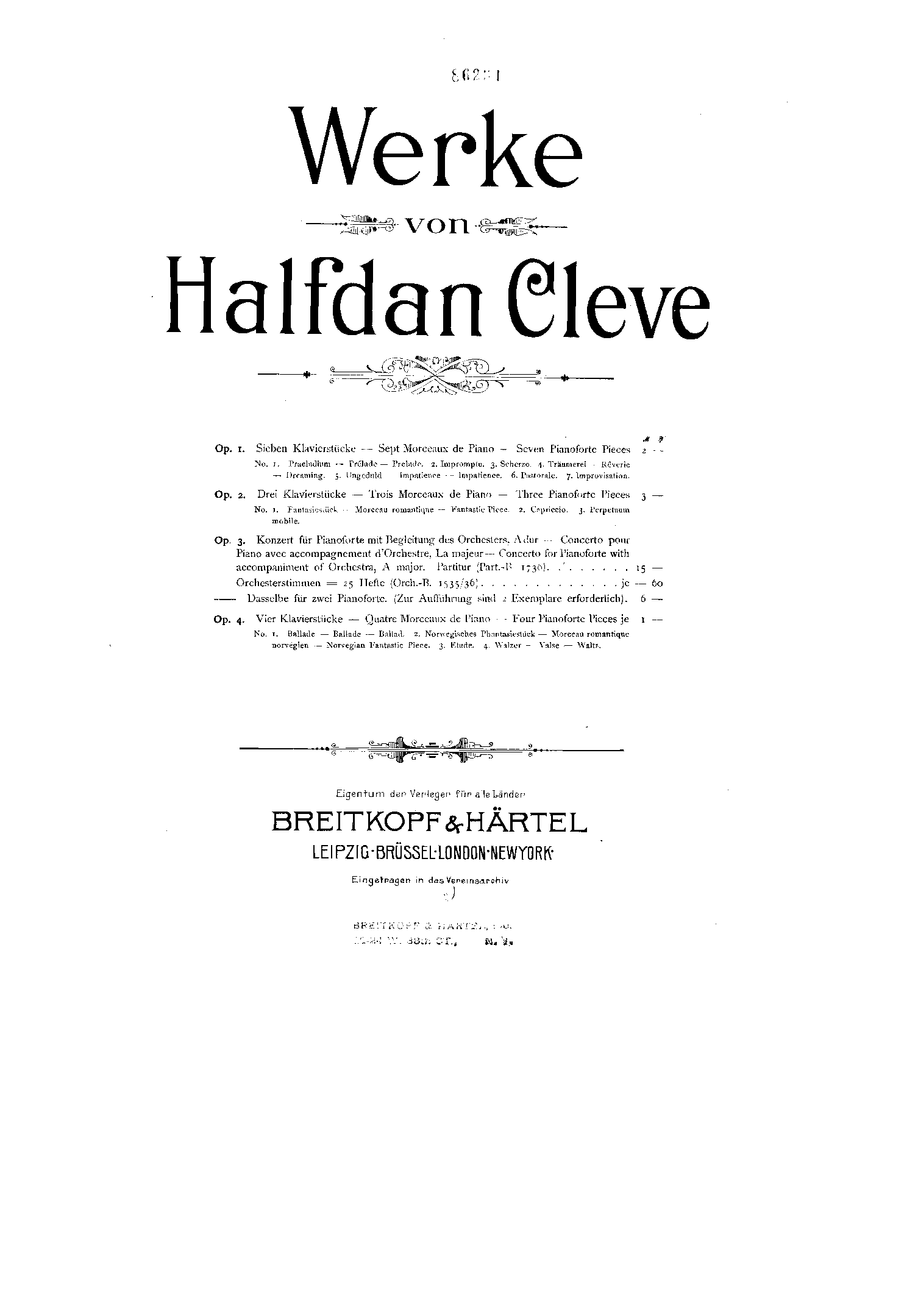 2-piano score contains dates of composition, first performance and copyright (a practice not sufficiently common and much commended.) Monatsbericht (1903), p.96 by the way. Has been recorded by Thoralf Norheim, piano; Herbert Blomstedt conducting the Oslo Philharmonic Orchestra.