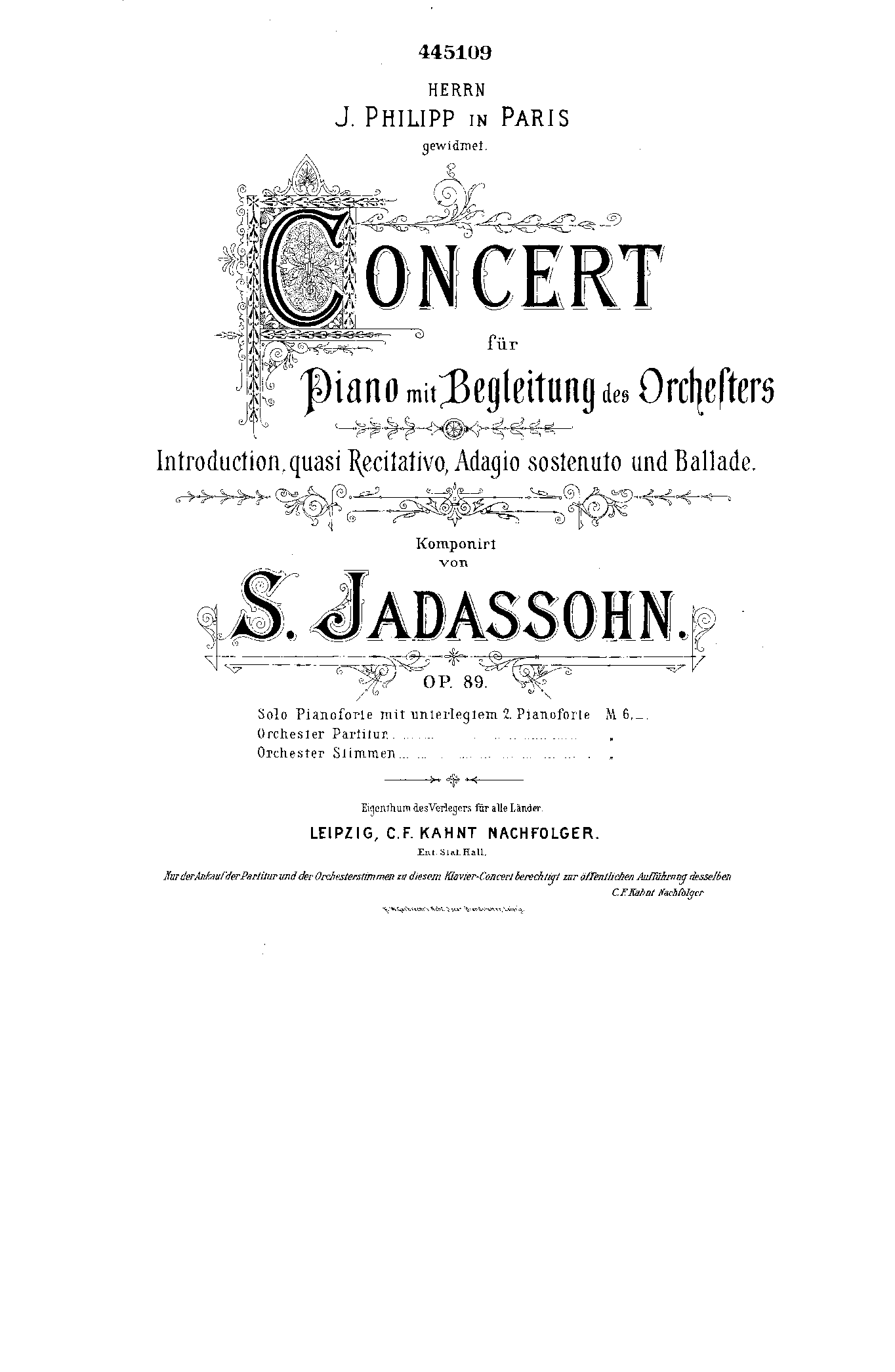 Piano Concerto No.1, Op.89 (Jadassohn, Salomon)