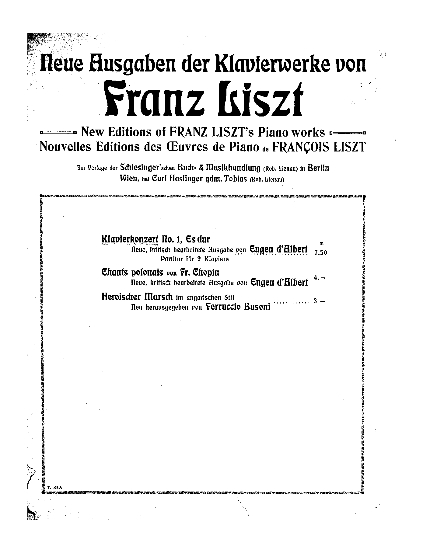 Misc. Notes Note: where the piano part is quiet, Liszt arranged the tuttis for both pianos. In this edition, Liszt's text is the same, but both tuttis are rearranged to the second piano (in order to keep the piano part unaltered).