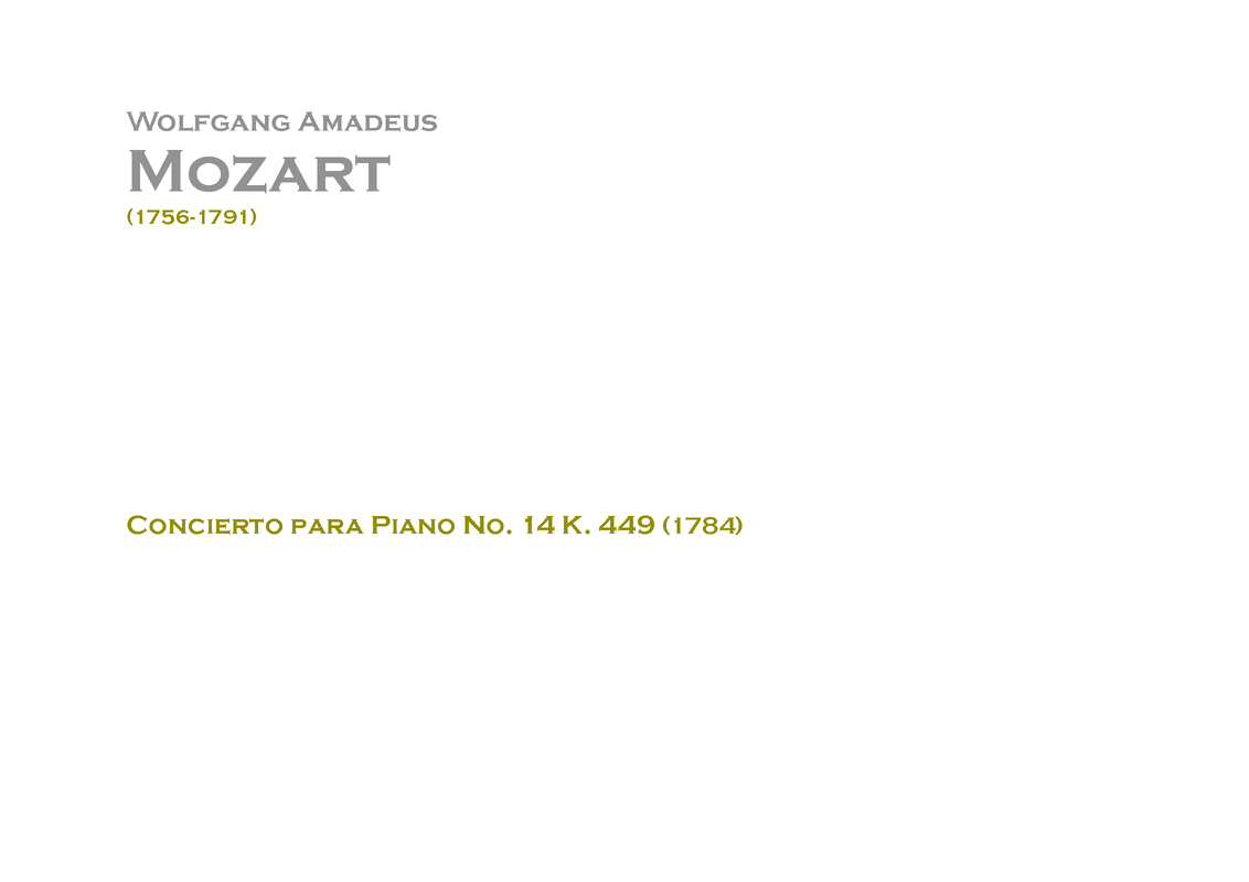 | Name Translations | Concerto pour piano nº 14 de Mozart; Piano Concerto No. 14; Pianoconcert nr. 14; XIV Koncert fortepianowy (KV 449); Pianokonsert nr. 14 av Mozart; |