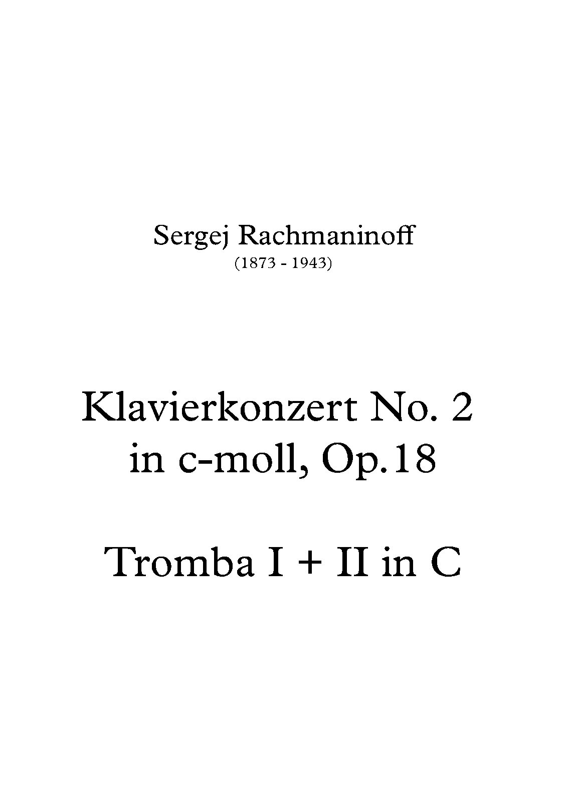 Name Aliases Rach 2; Piano Concerto No. 2 in C Minor, Op. 18; Klavierkonzert Nr. 2; Klavierkonzert c-Moll; Klavierkonzert in c-Moll; Pianoconcert nr. 2 (Rachmaninov); Κοντσέρτο για πιάνο και ορχήστρα αρ.2 σε Ντο ελάσσονα, έργο 18; Klaverkoncert nr. 2 c-mol op. 18