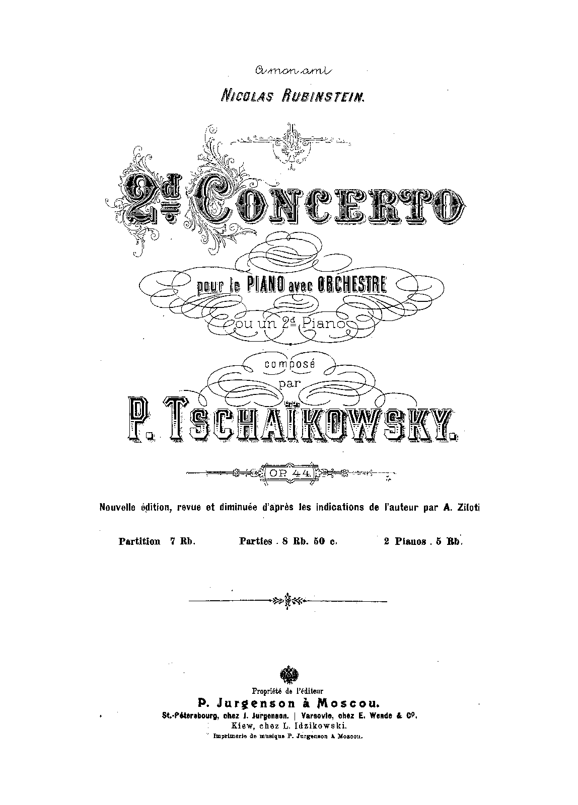 Also arranged for 2 pianos by Tchaikovsky, 1880. For many years this concerto was known mainly in version B, prepared by Alexander Siloti after Tchaikovsky's death.